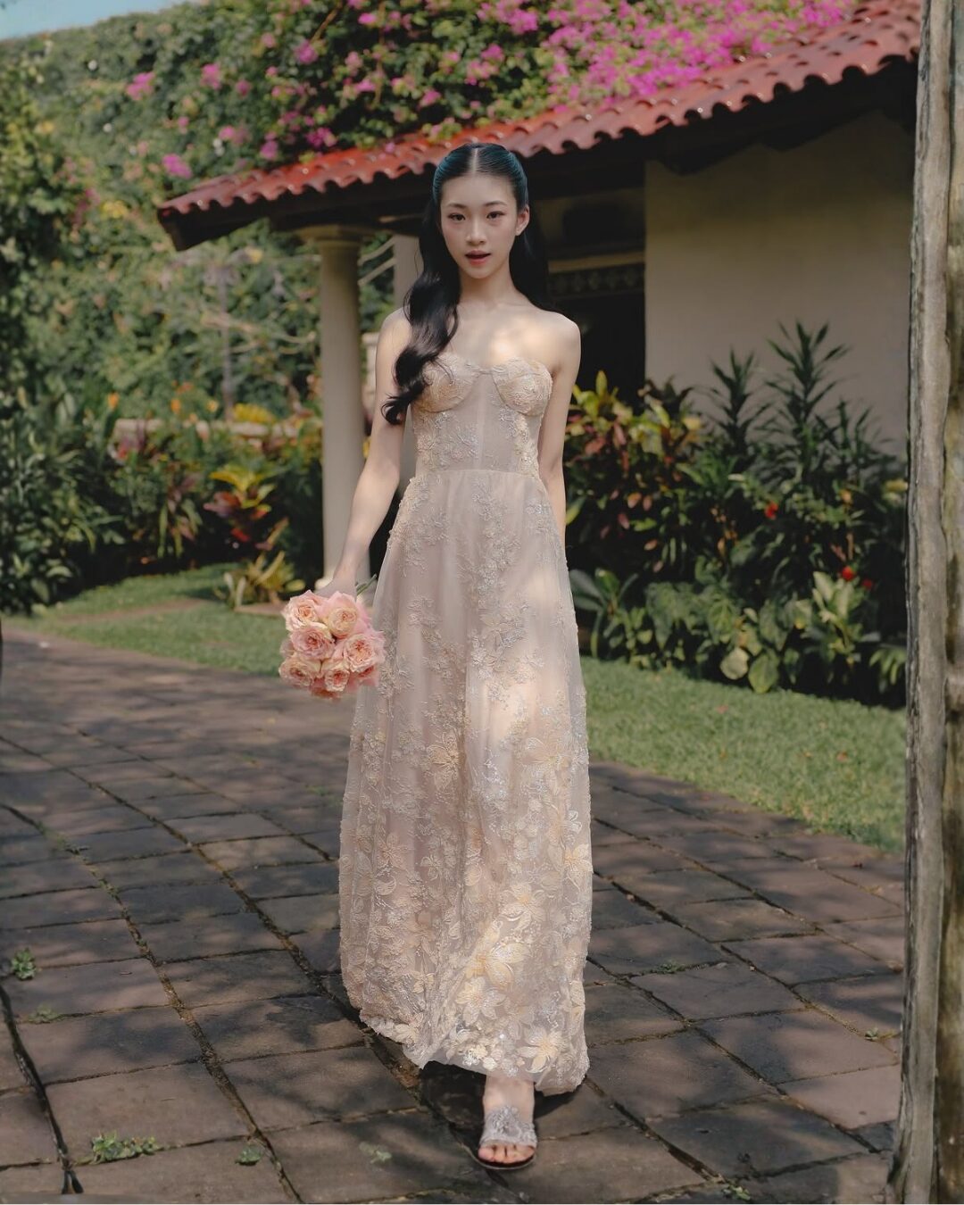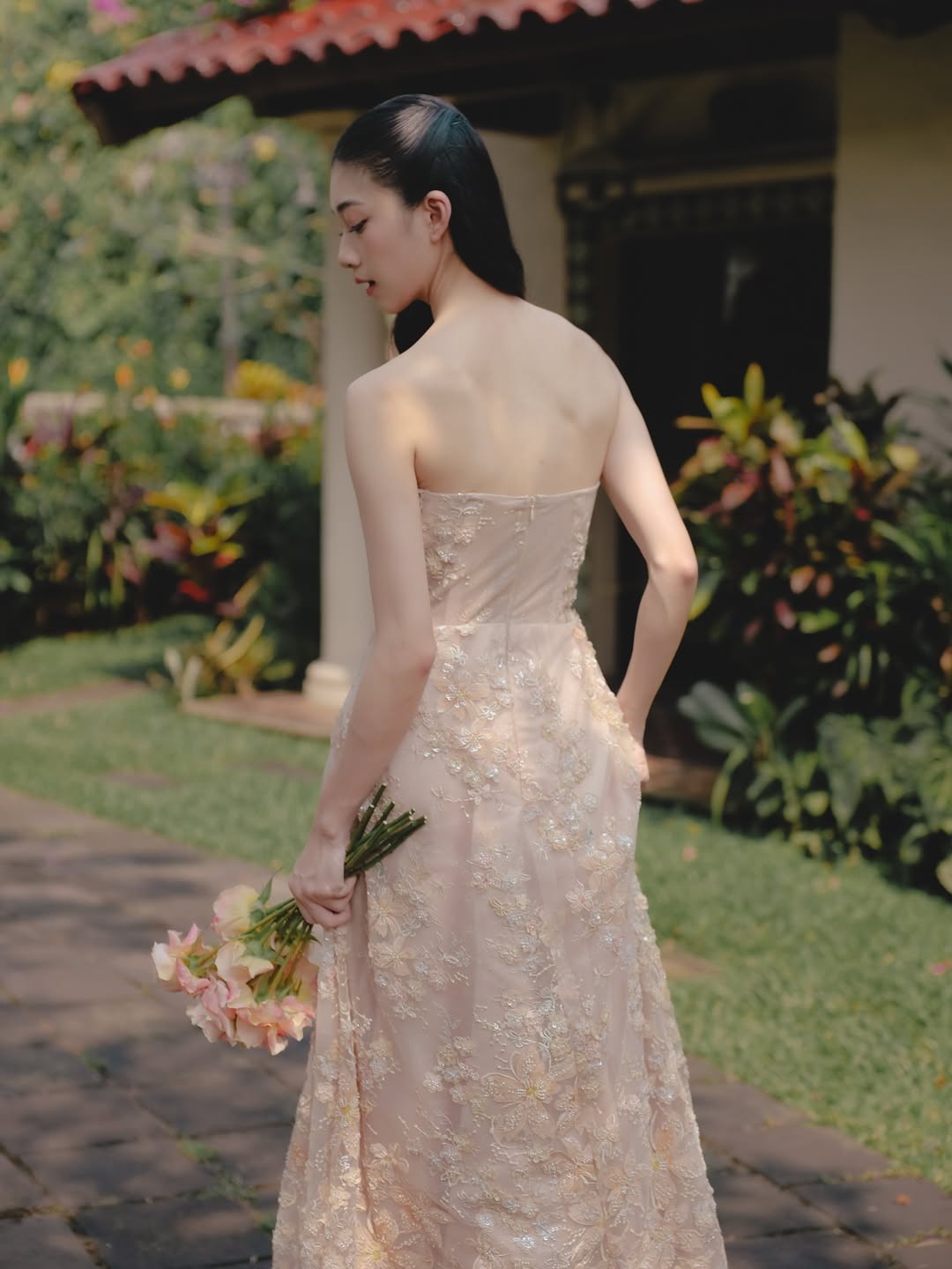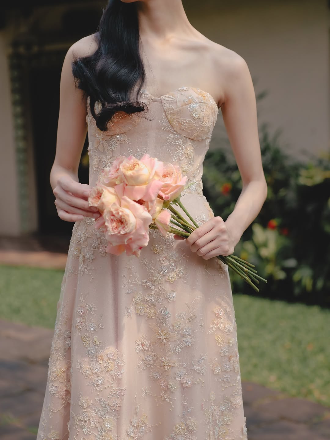 & Free ShippingSognare • Nude • Size: XS • Dress • Long Dress • 130 105 • Party Guest • Floral • B 78-82 / W 60-64 • Original Price: Rp3,699,000 • Deposit Rp300,000