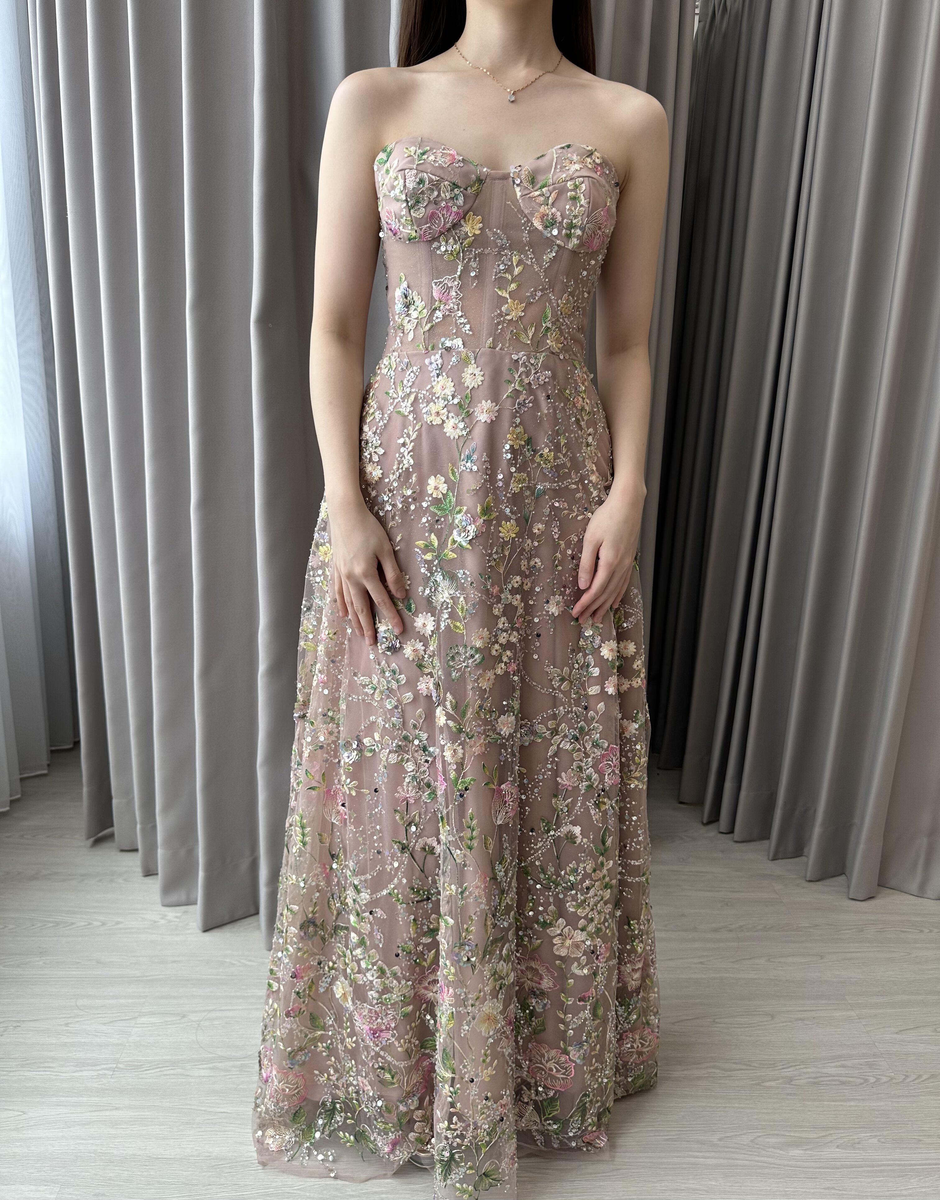 & Free ShippingSognare • Pink • Size: S-M • Dress • Long Dress • Fr bust: 137 Fr waist: 112 • Party Guest • Floral • B 82-86 / W 70-72 • Original Price: Rp3,499,000 • Deposit Rp300,000