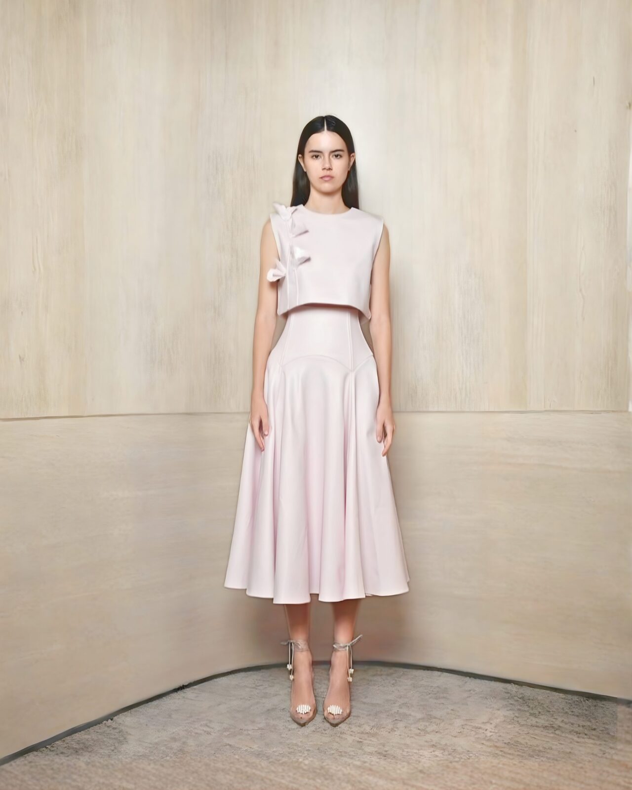 & Free ShippingDuma • Pink • Size: S • Sets (Top & Bottom) • Long Dress • Top: 34 Skirt: 92 • Party Guest • Minimalist • B 84-88 / W 68-72 • Original Price: Rp1,600,000 • Deposit Rp250,000
