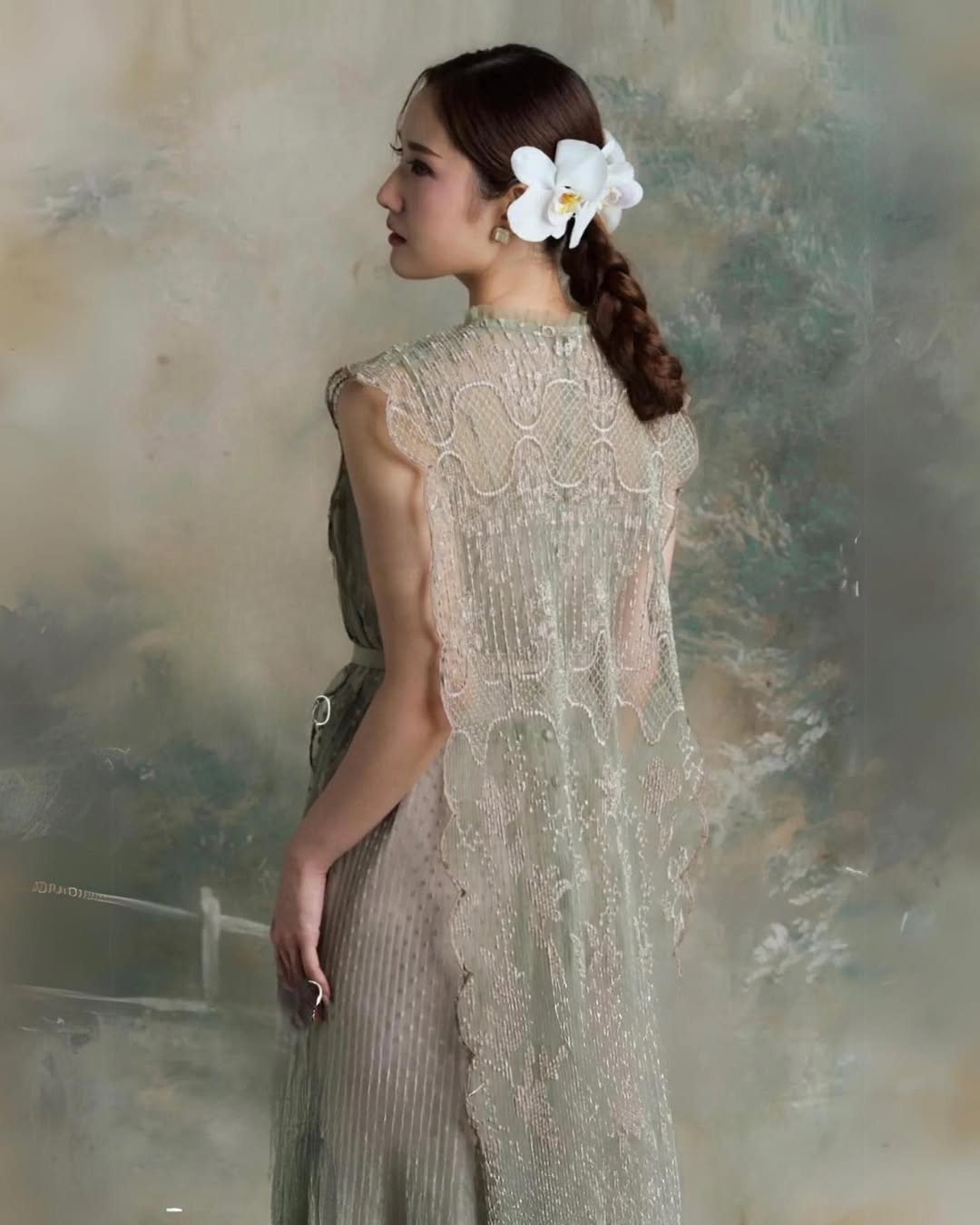 & Free ShippingDewi Roam • Green • Size: S-M • Dress • Long Dress • 135 • Hijab Friendly, Party Guest • Floral • B 92 / W 78 • Original Price: Rp1,250,000 • Deposit Rp250,000