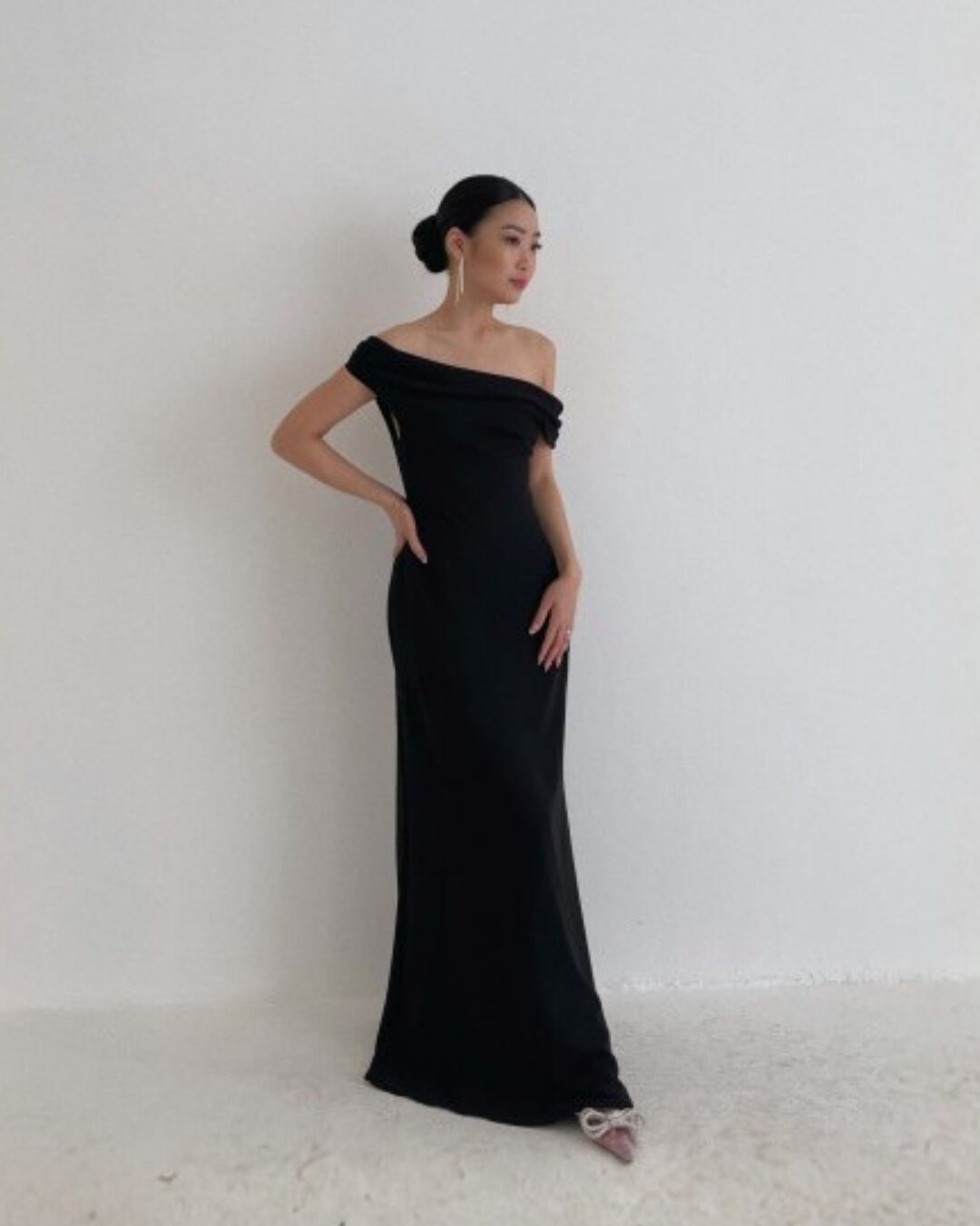 & Free ShippingGemme • Black • Size: M • Dress • Long Dress • 132 • Party Guest • Minimalist • B 86-90 / W 73-75 / H 98-100 • Original Price: Rp750,000 • Deposit Rp150,000