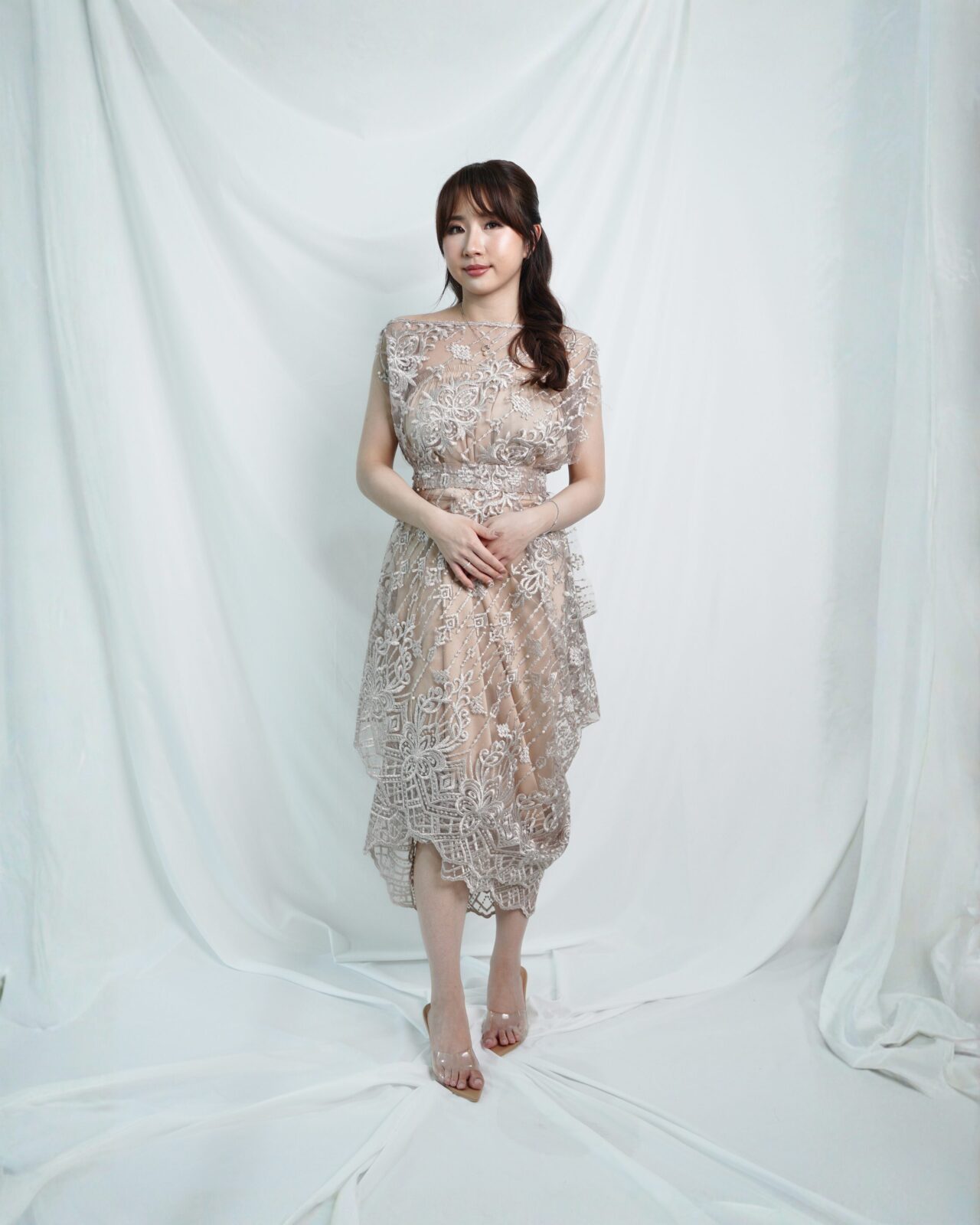 & Free ShippingBeauteeq Atelier • Nude • Size: All Size • Dress • Long Dress • Inner: 76 Outer: 115 • Hijab Friendly, Party Guest • Minimalist • B 90 / W 128 / H 140 • Original Price: Rp750,000 • Deposit Rp150,000