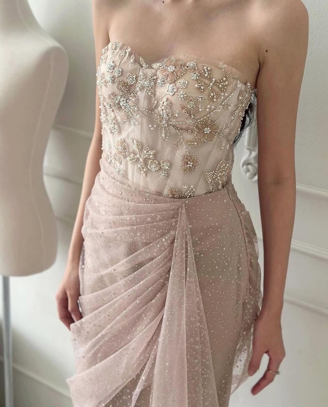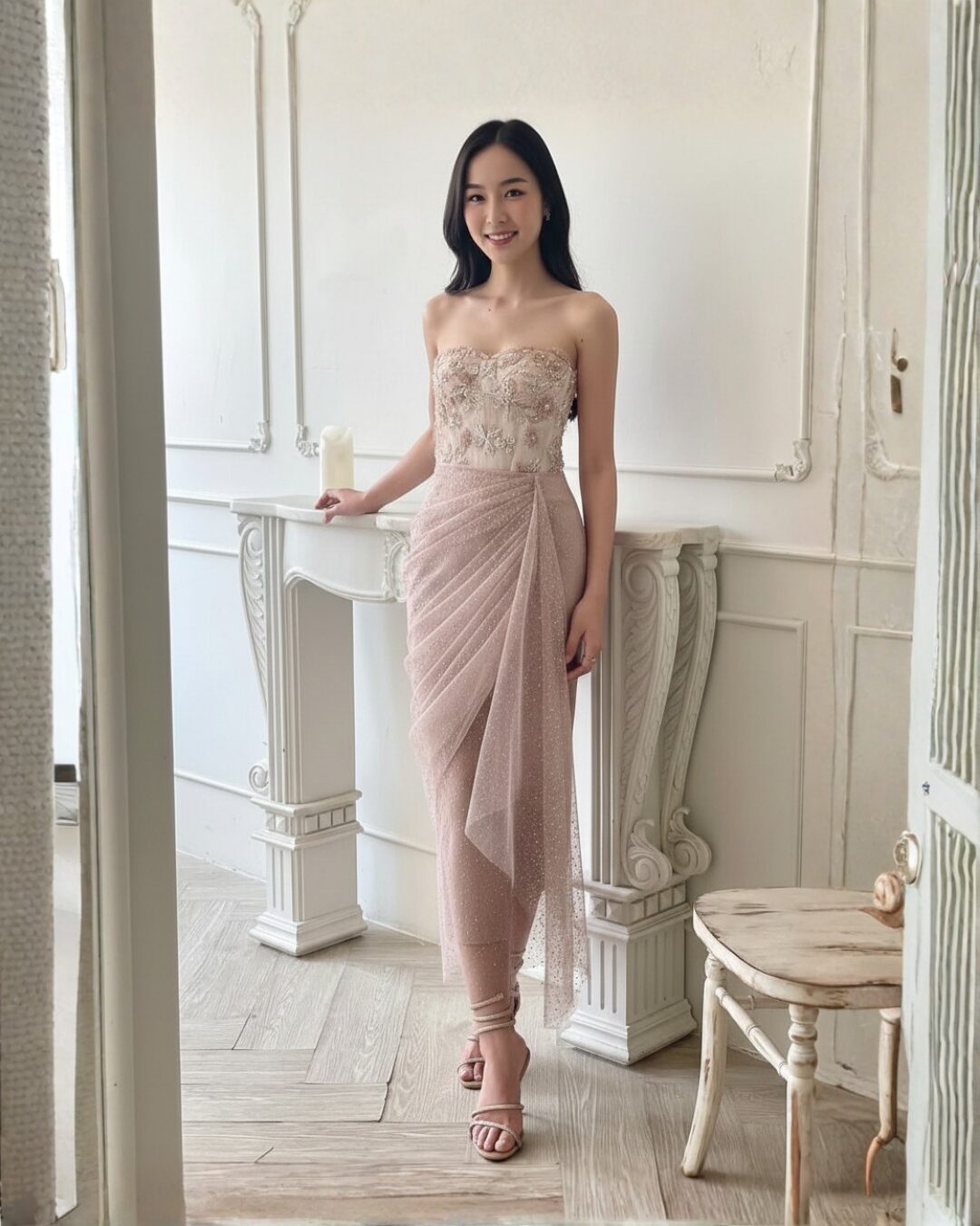 & Free ShippingTouch Up • Nude • Size: M-L • Sets (Top & Bottom) • Midi • Top: 31 Skirt: 90 • Party Guest • Floral • B 90-94 / W 74-78 / H 94-96 • Original Price: Rp1,850,000 • Deposit Rp250,000