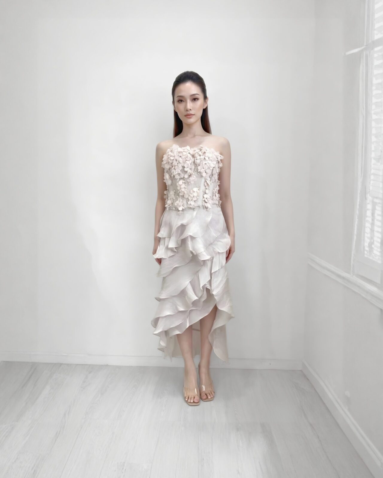 & Free ShippingTouch Up • Pink • Size: S-M • Sets (Top & Bottom) • Midi • Top: 30 Skirt: 89 • Party Guest • Floral • B 86-90 / W 68-74 / H 92-94 • Original Price: Rp2,200,000 • Deposit Rp300,000