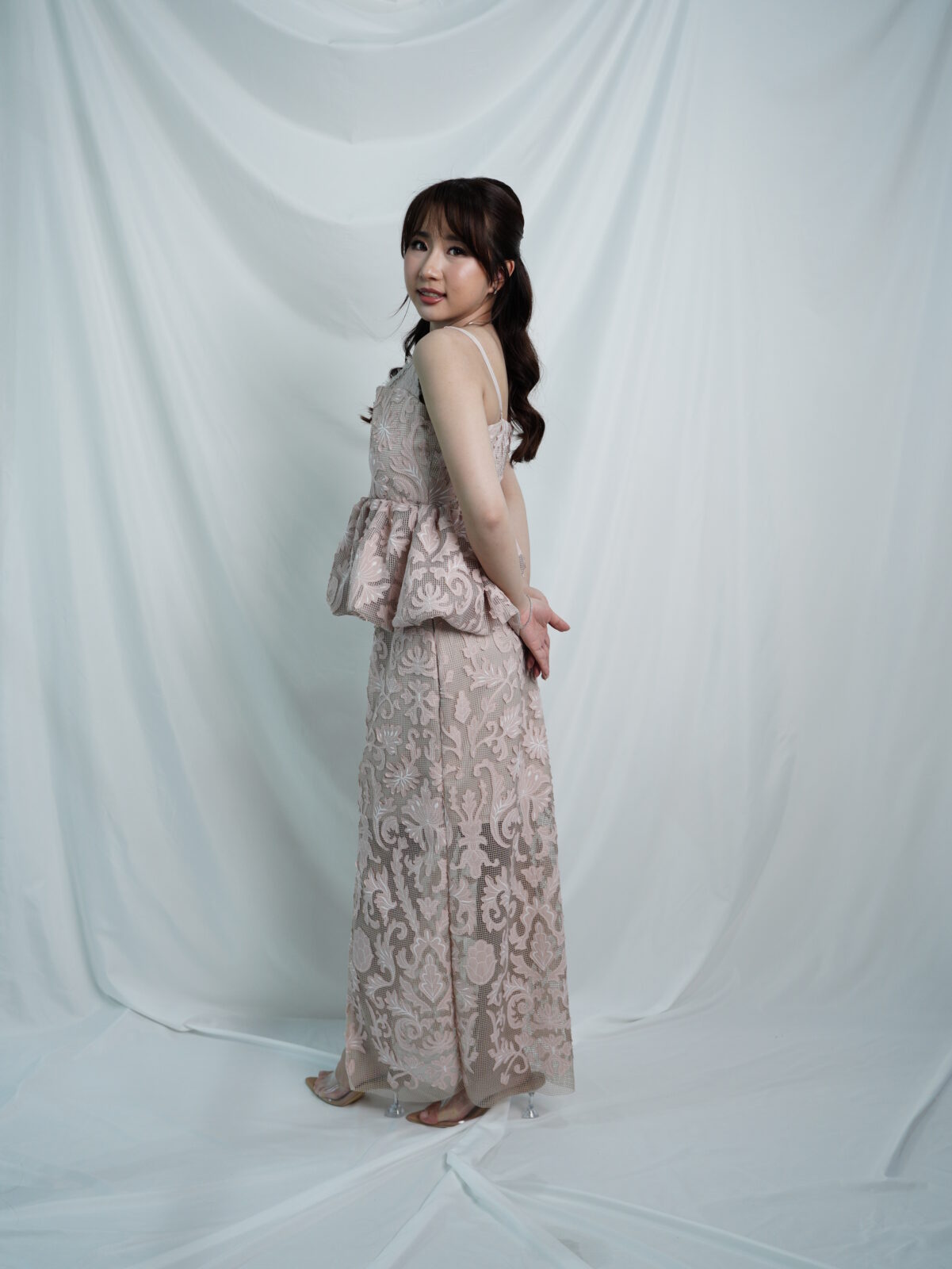 & Free ShippingTouch Up • Nude • Size: M • Sets (Top & Bottom) • Long Dress • 39 97 • Party Guest • Floral • B 84-88 / W 70-72 / H 96 • Original Price: Rp2,300,000 • Deposit Rp300,000