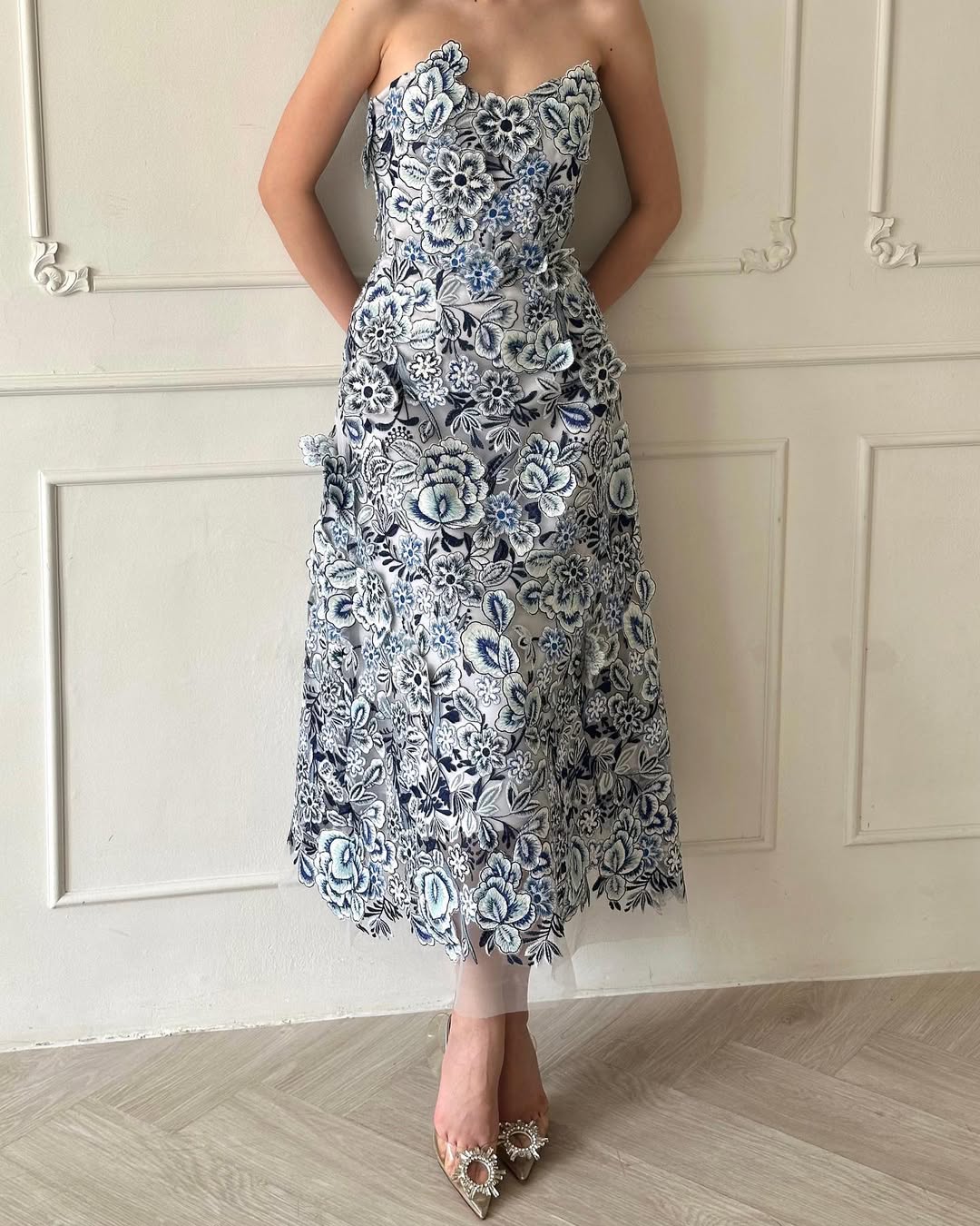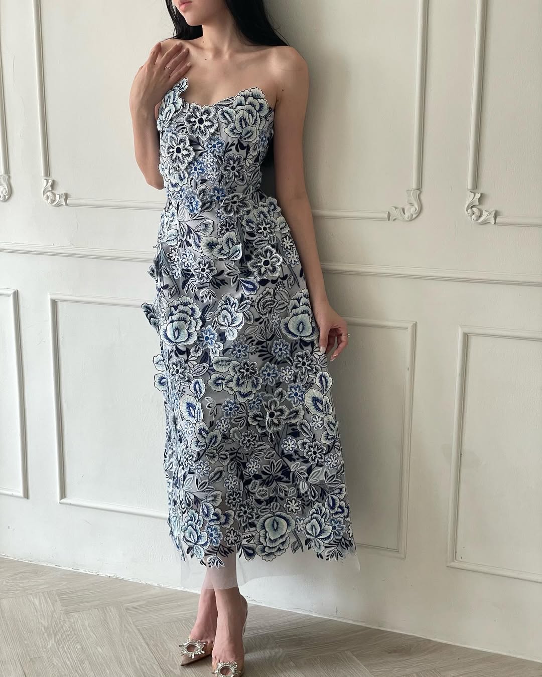 & Free ShippingTouch Up • Blue • Size: XS-S • Dress • Midi • 105 • Party Guest • Floral • B 84-85 / W 70-73 • Original Price: Rp2,470,000 • Deposit Rp300,000