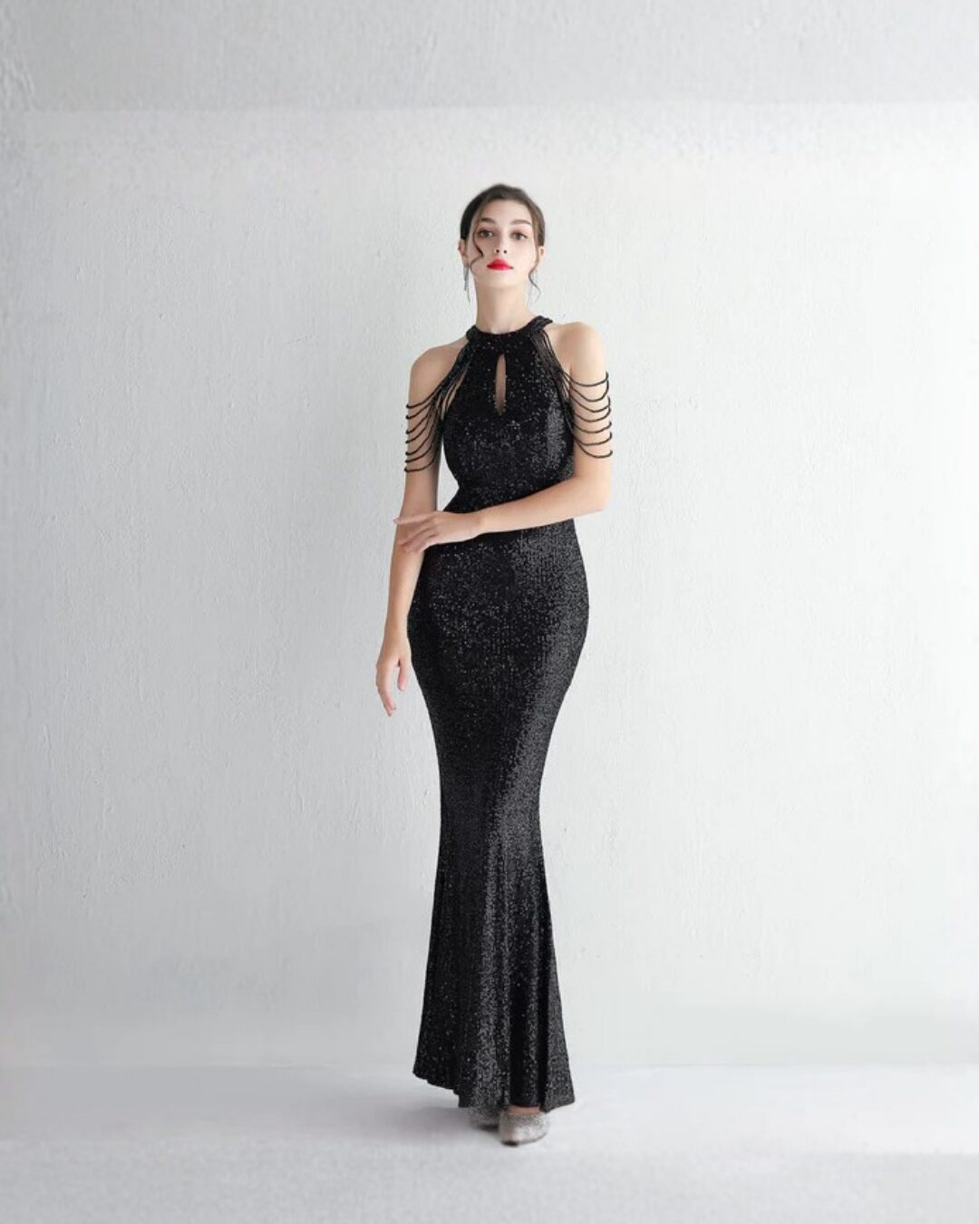 & Free ShippingSequin • Black • Size: S-L • Dress • Maxi • 155 • Party Guest • Glam • B 80-96 / W 64-80 / H 84-110 • Original Price: Rp2,350,000 • Deposit Rp300,000