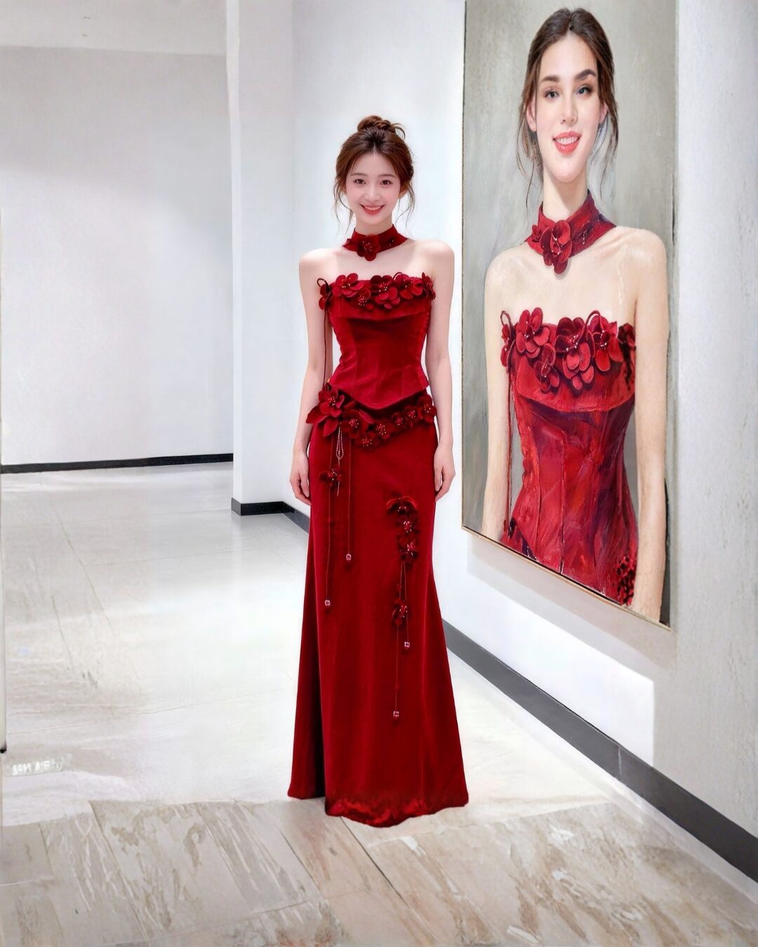 & Free ShippingDress Import • Red • Size: S-M • Sets (Top & Bottom) • Maxi • 37 105 • Party Guest • Floral • B 80-90 / W 66-70 / H 98 • Original Price: Rp1,999,000 • Deposit Rp250,000