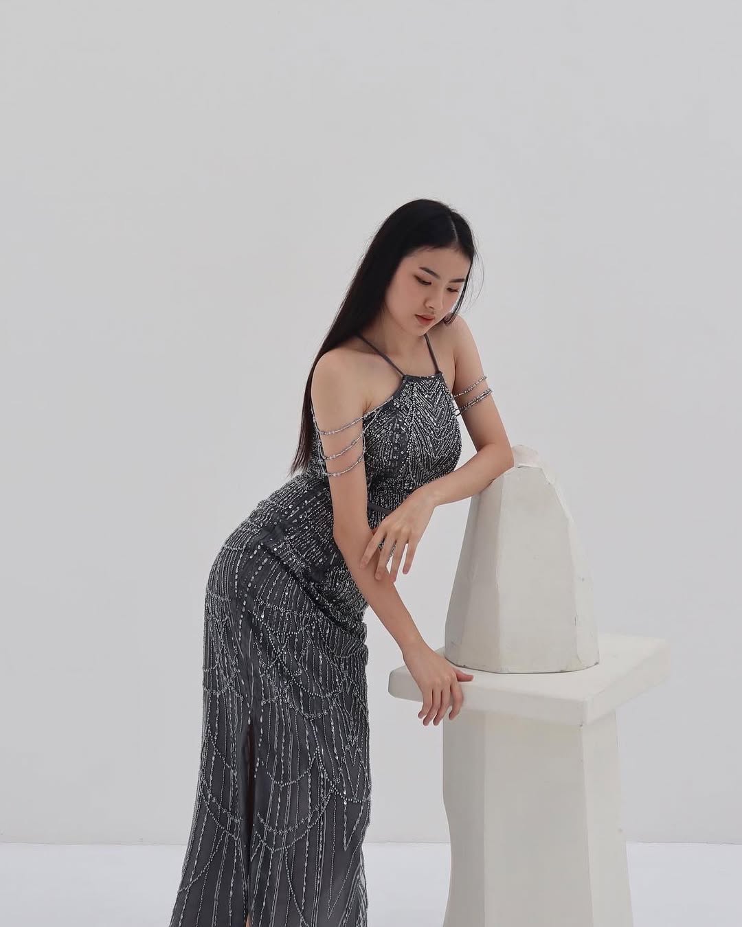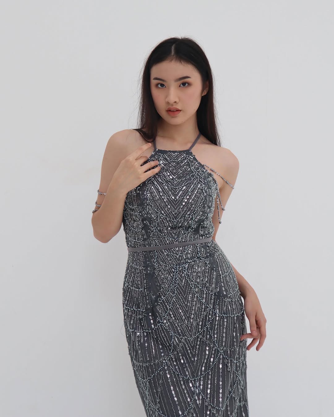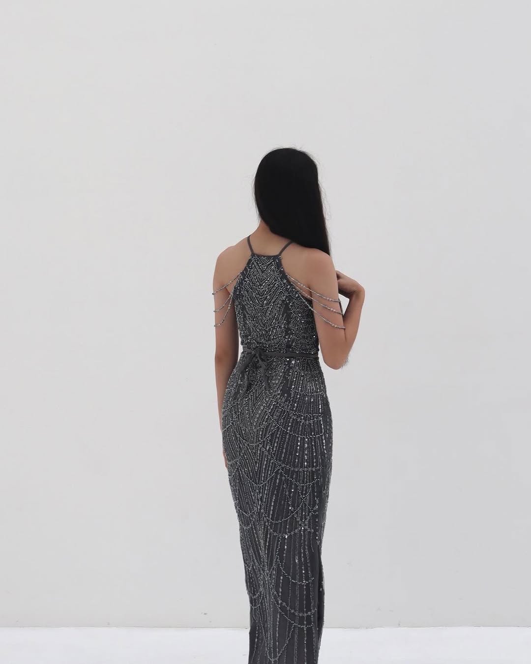 La Fleur • Gray • Size: M • Dress • Maxi • 130 • Party Guest • Glam • B 84-86 / W 72-74 / H 94-96 • Original Price: Rp2,499,000 • Deposit Rp300,000