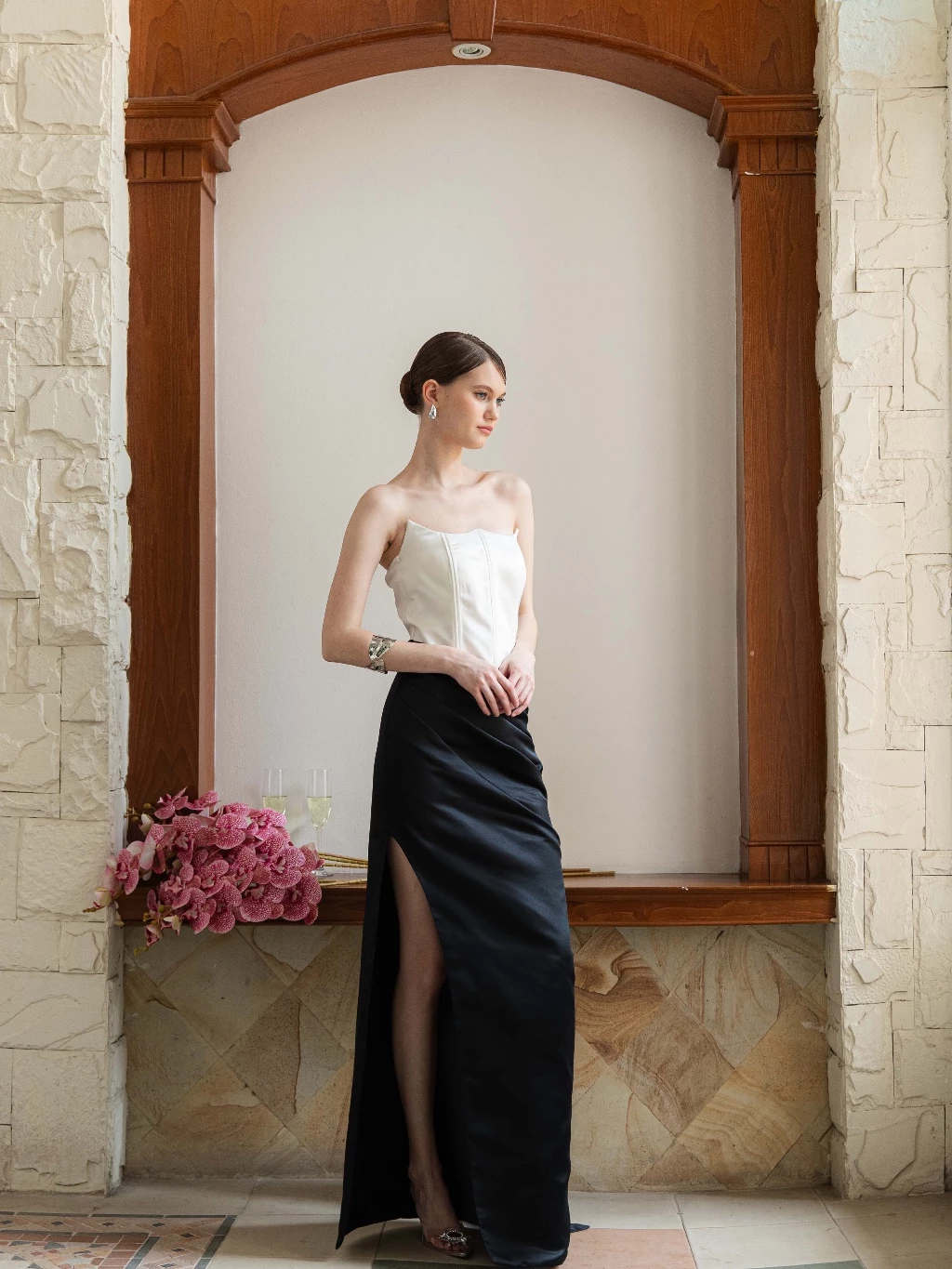 & Free ShippingComa Label • Black & White • Size: S • Dress • Maxi • 132 74 • Party Guest • Minimalist • B 80-82 / W 68-70 / H 92 • Original Price: Rp560,000 • Deposit Rp150,000