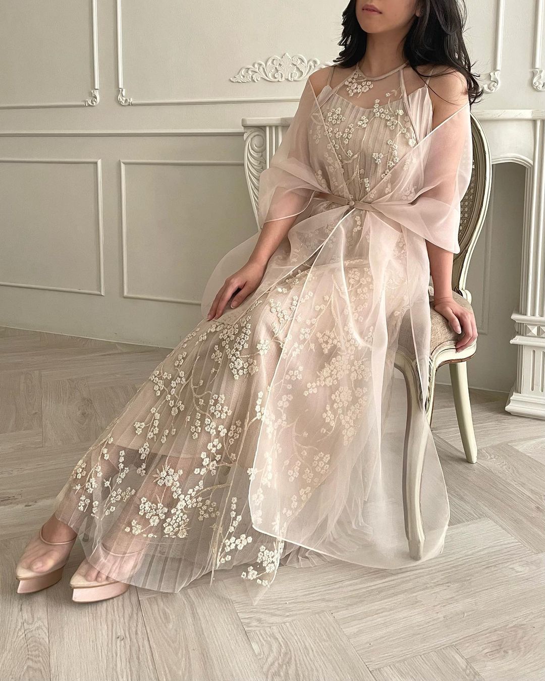 & Free ShippingTouch Up • Nude • Size: XS-M • Dress • Long Dress • 130 • Hijab Friendly, Party Guest • Floral • B 84 / W 84 • Original Price: Rp1,350,000 • Deposit Rp250,000