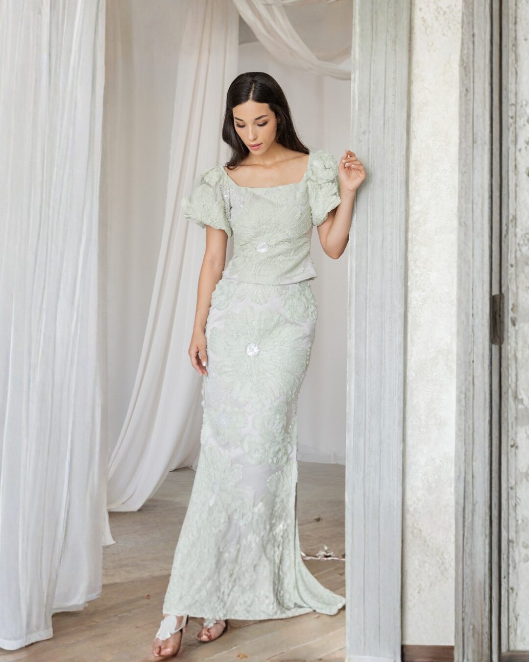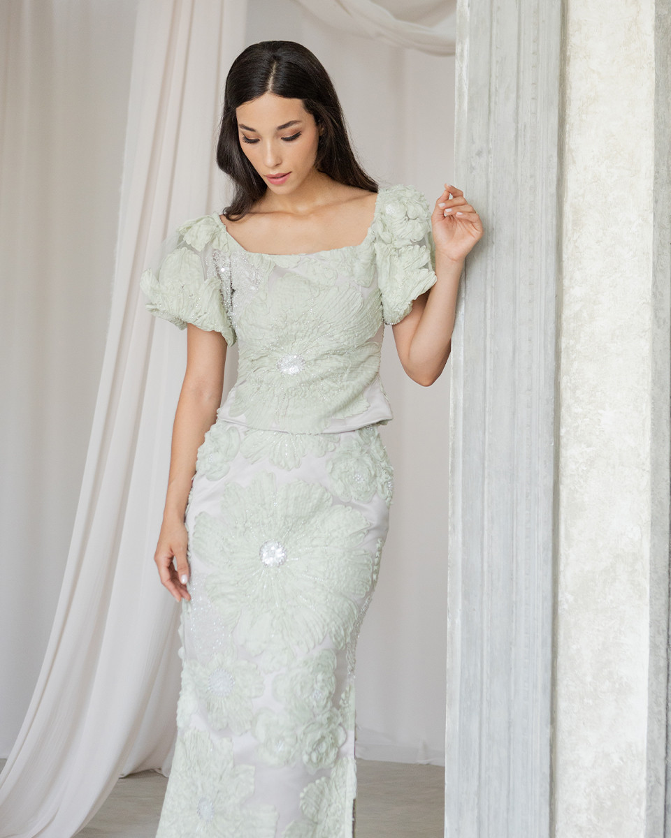 & Free ShippingTouch Up • Green • Size: S-M • Sets (Top & Bottom) • Long Dress • Fr bust: 32 Skirt: 92 • Party Guest • Floral • B 84-90 / W 72-74 / H 90-92 • Original Price: Rp1,950,000 • Deposit Rp250,000