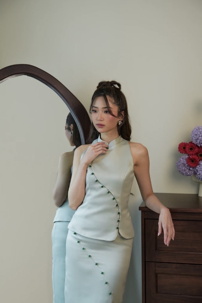 & Free ShippingScarlette Rtw • Green • Size: XS • Sets (Top & Bottom) • Long Dress • 50 92 • Cheongsam • Minimalist • B 78-80 / W 60-66 / H 88 • Original Price: Rp1,200,000 • Deposit Rp250,000