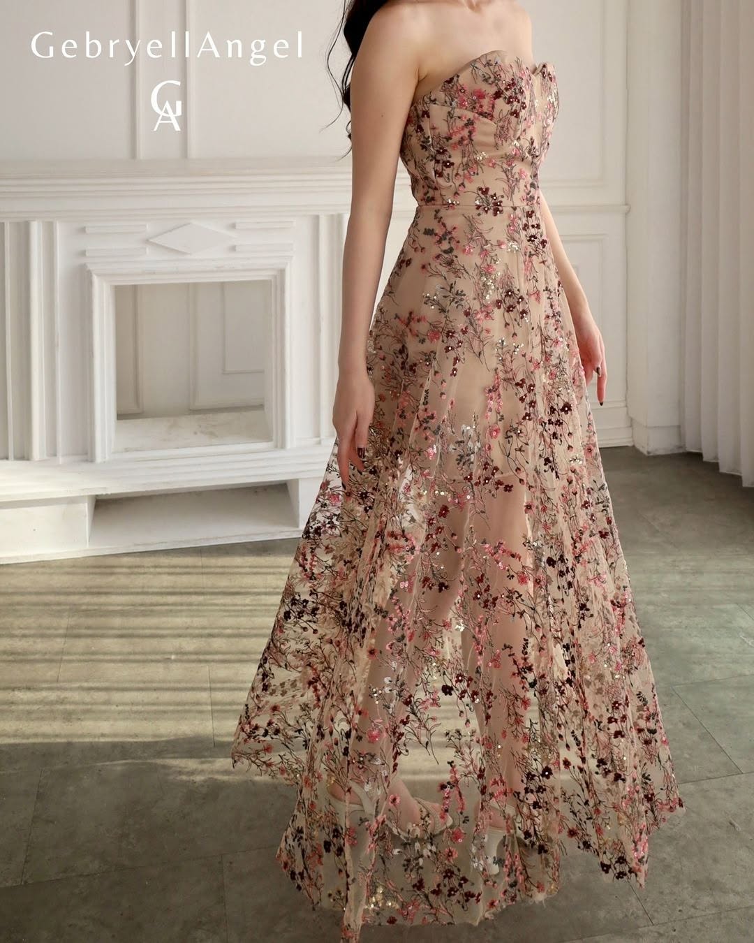 & Free ShippingGebryell Angel • Nude • Size: S • Dress • Long Dress • 66-118 • Party Guest • Floral • B 84-86 / W 66-68 / H 88-92 • Original Price: Rp2,665,000 • Deposit Rp300,000