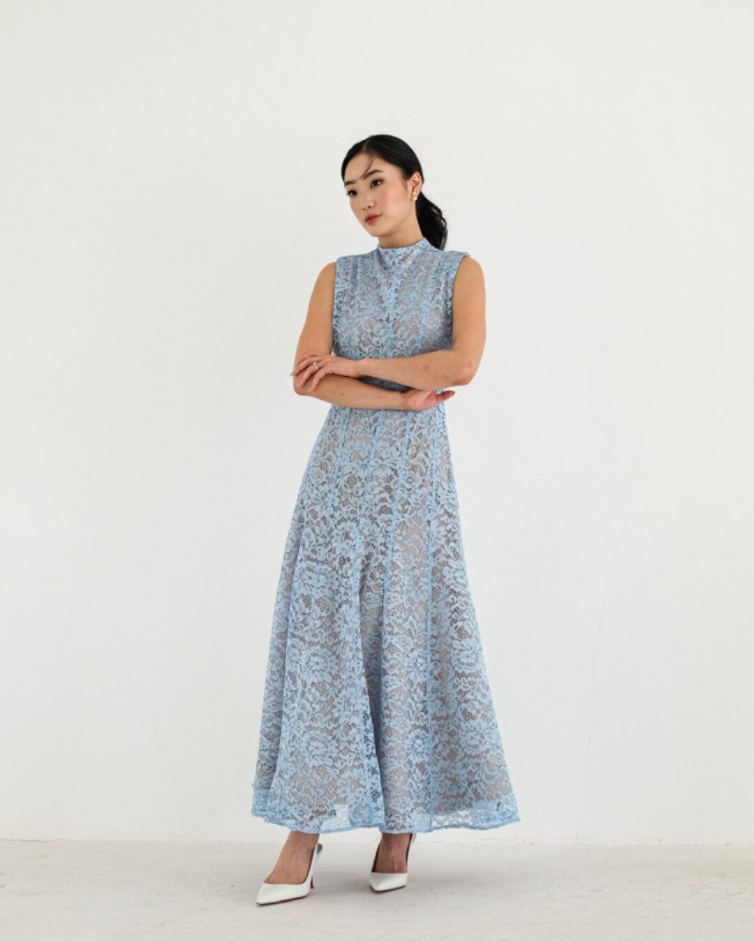 & Free ShippingGemme • Blue • Size: S • Dress • Long Dress • 126 • Party Guest • Floral • B 84-86 / W 68-70 • Original Price: Rp990,000 • Deposit Rp150,000