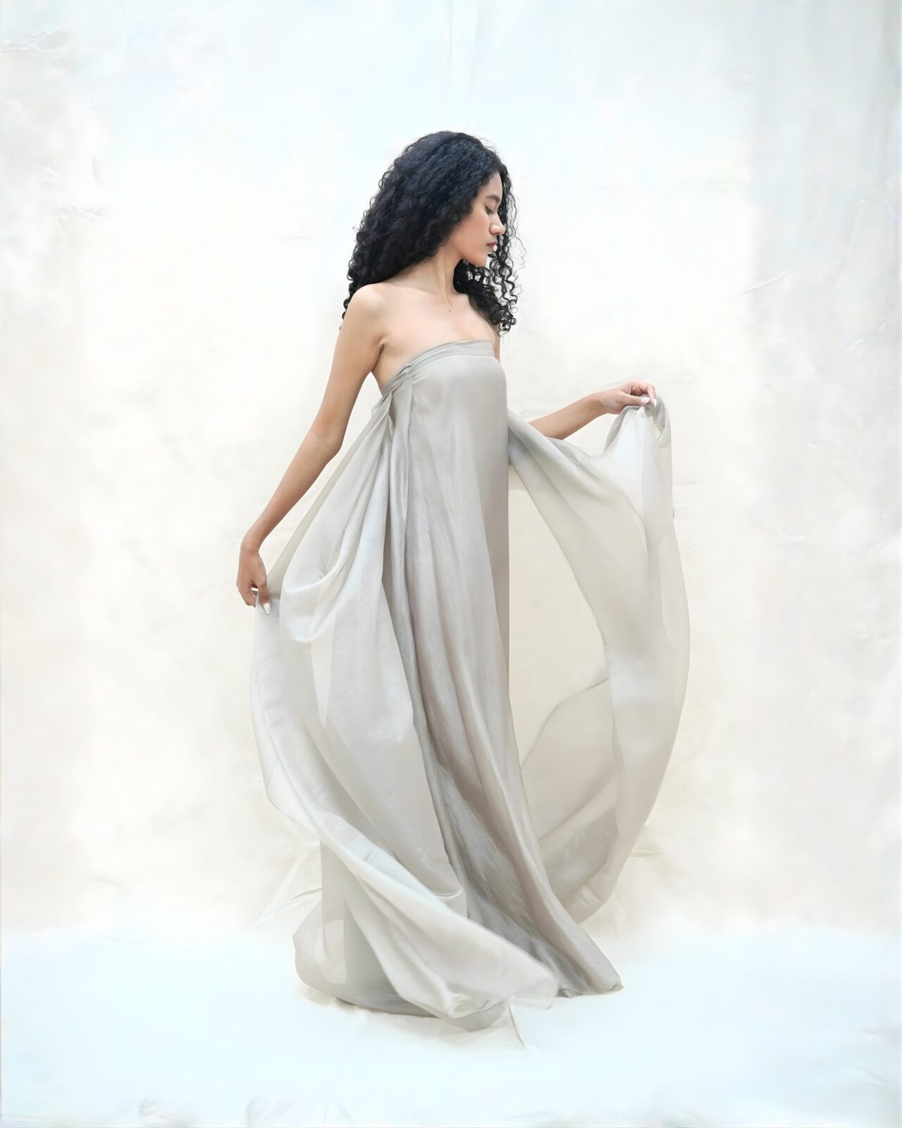 & Free ShippingSaya Tales • Gray • Size: S-M • Dress • Long Dress • fr bust: 143 • Maternity, Party Guest • Minimalist • B 82-90 • Original Price: Rp1,600,000 • Deposit Rp250,000