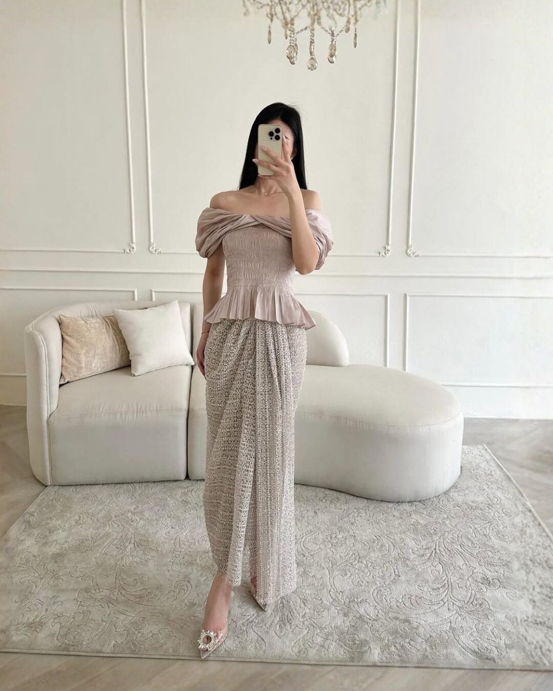 & Free ShippingTouch Up • Lilac • Size: S-M • Sets (Top & Bottom) • Maxi • Top: 30 Skirt: 91 • Party Guest • Minimalist • B 84-90 / W 70-72 / H 90-92 • Original Price: Rp2,250,000 • Deposit Rp300,000