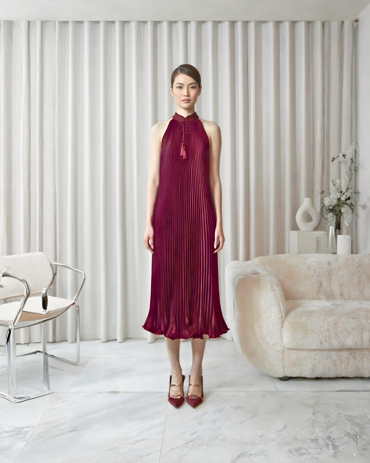 & Free ShippingClaude Official • Red • Size: All Size • Dress • Midi • 119 • Maternity, Cheongsam • Minimalist • Original Price: Rp899,000 • Deposit Rp150,000
