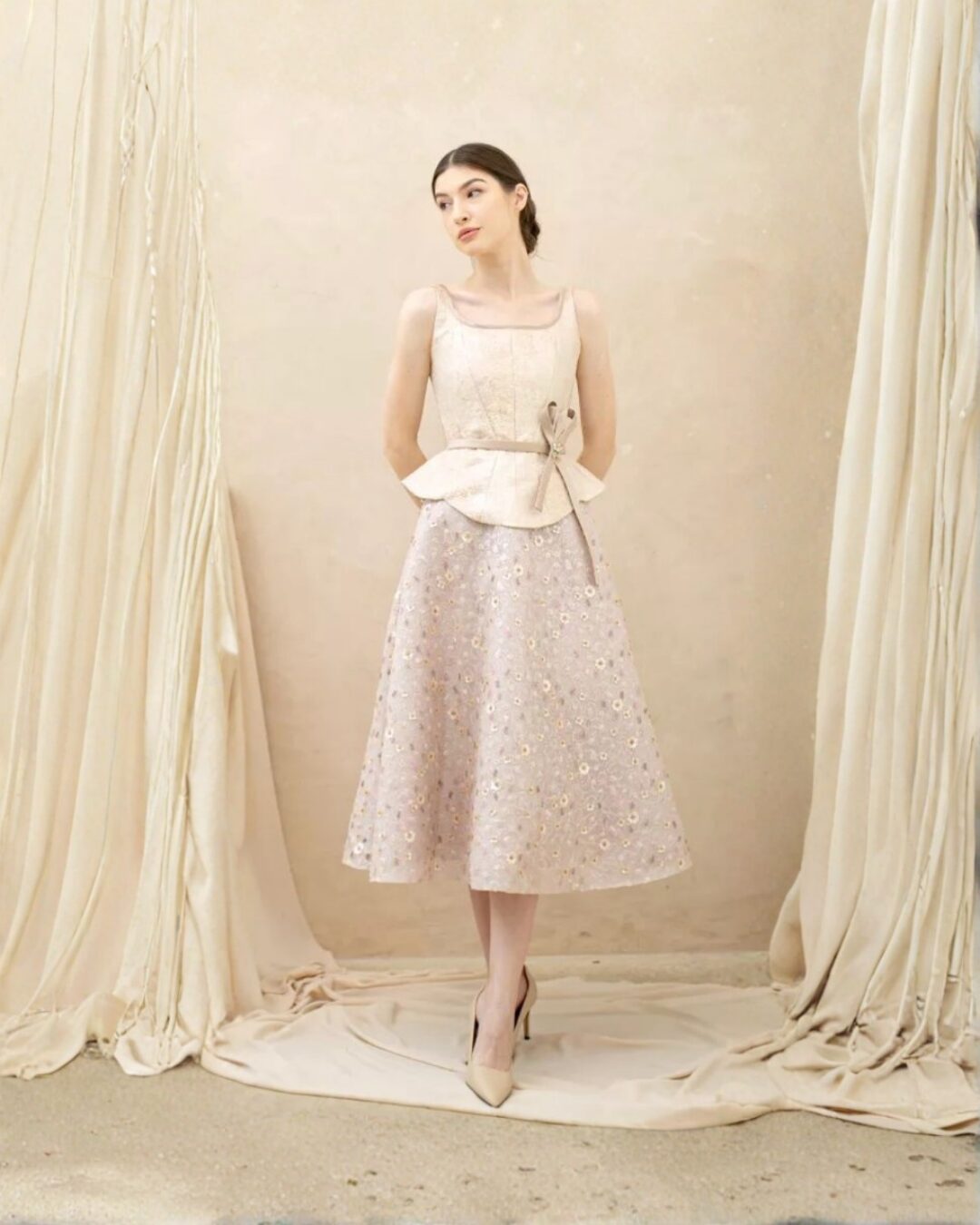 & Free ShippingVivienco • Nude • Size: M • Sets (Top & Bottom) • Midi • Top: 40 Skirt: 83 Strap: 30 • Party Guest • Minimalist • B 85-86 / W 71-74 • Original Price: Rp2,600,000 • Deposit Rp300,000