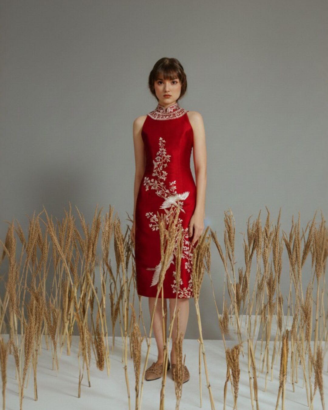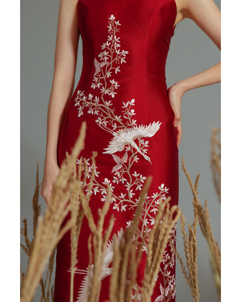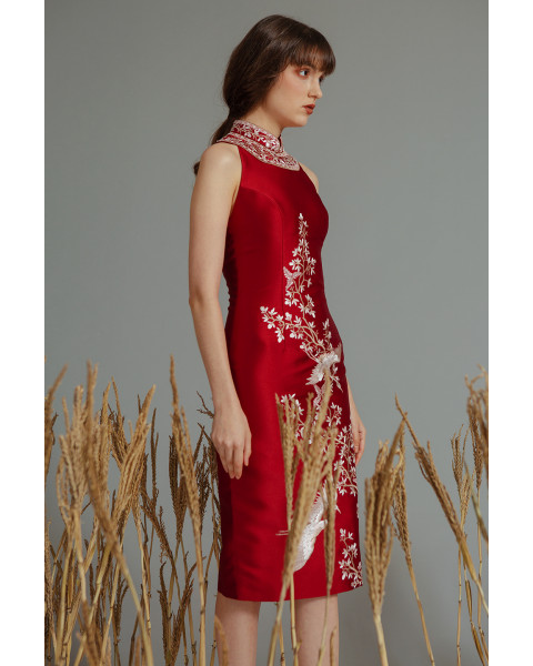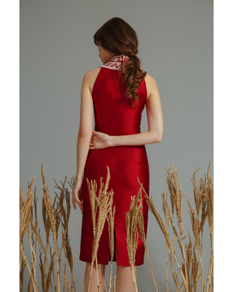& Free ShippingCharlotta Atelier • Red • Size: S-M • Dress • Midi • 102 • Cheongsam • Minimalist • B 84-86 / W 68-74 / H 86-88 • Original Price: Rp2,199,000 • Deposit Rp300,000