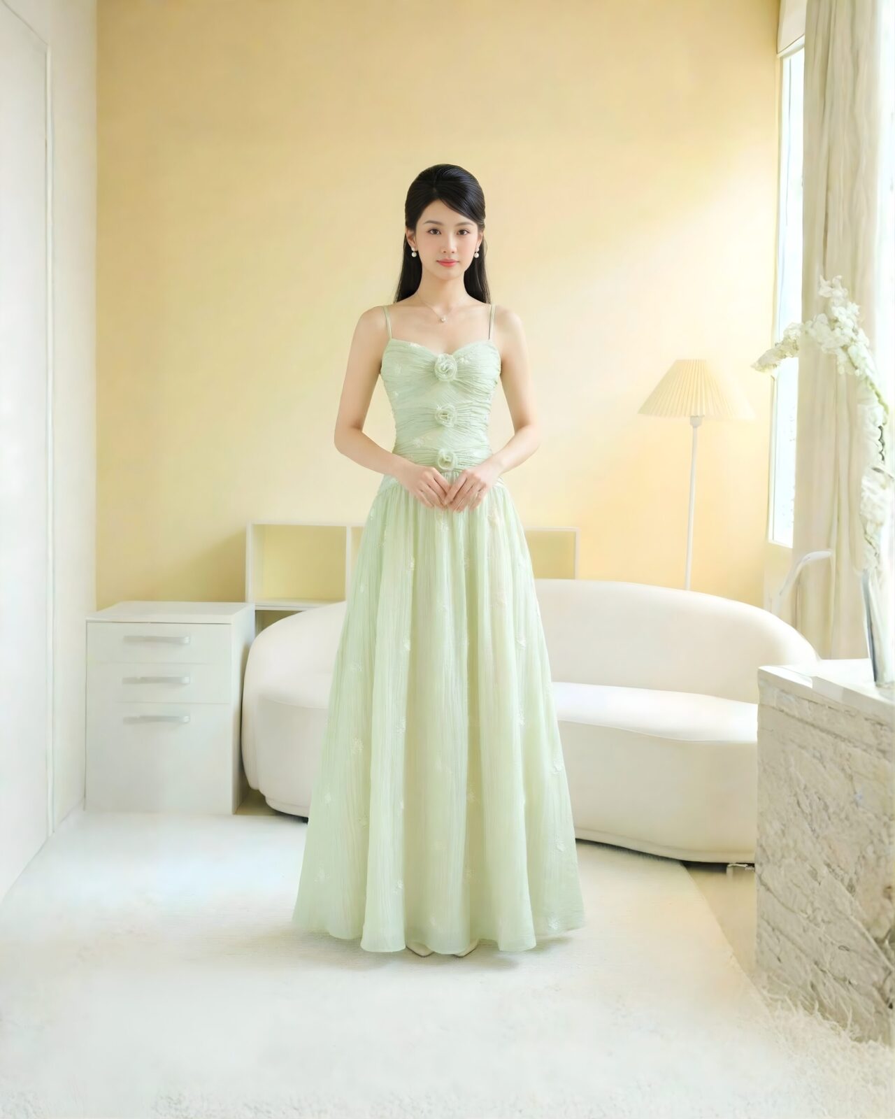 & Free ShippingVietnam Dress • Green • Size: S-M • Dress • Long Dress • Fr bust: 125 • Party Guest • Floral • B 82-86 / W 72-74 • Original Price: Rp1,850,000 • Deposit Rp250,000
