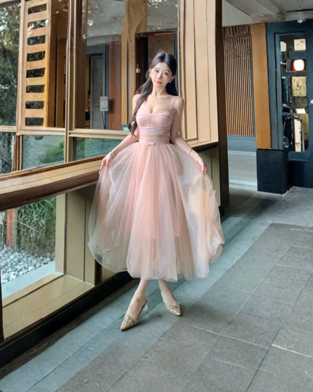 & Free ShippingVietnam Dress • Pink • Size: XS • Dress • Midi • 105 83 30 • Party Guest • Minimalist • B 72-78 / W 66-68 • Original Price: Rp1,750,000 • Deposit Rp250,000