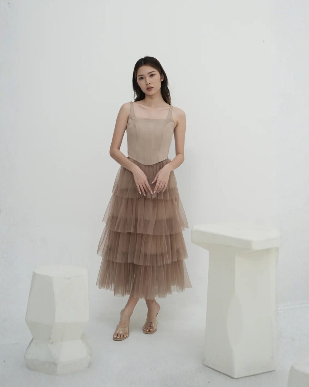 & Free ShippingLa Fleur • Brown • Size: M • Sets (Top & Bottom) • Long Dress • Top:32 Skirt:90 strap: 26 • Party Guest • Minimalist • B 84-86 / W 71-73 / H 93-95 • Original Price: Rp1,675,000 • Deposit Rp250,000