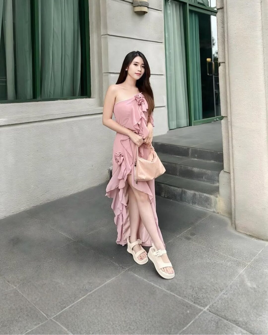 & Free ShippingKleita Official • Pink • Size: XS-S • Dress • Midi • 114 82 33 • Party Guest • Floral • B 82-86 / W 64-68 / H 94 • Original Price: Rp553,000 • Deposit Rp150,000