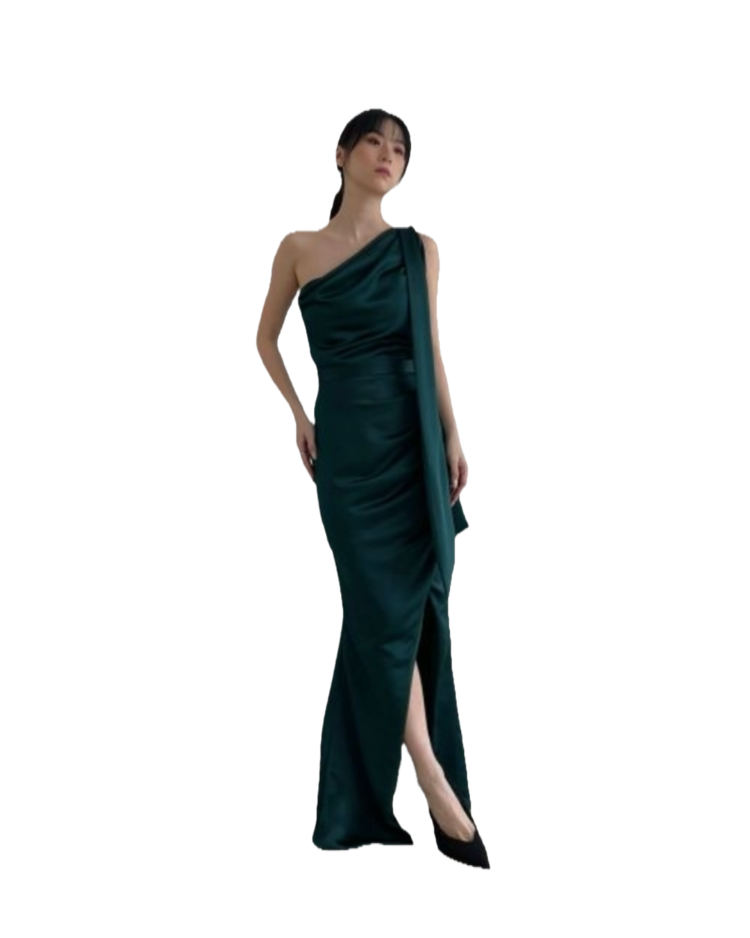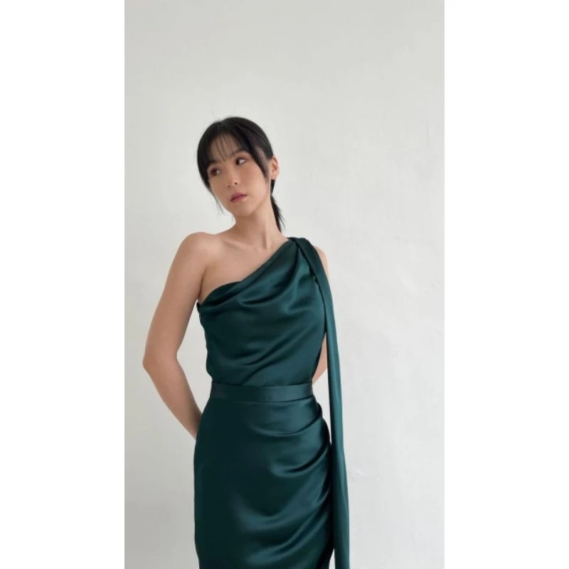 & Free ShippingGemme • Green • Size: S • Sets (Top & Bottom) • Long Dress • Top: 56 Skirt:107 • Party Guest • Minimalist • B 84-86 / W 66-70 / H 93-94 • Original Price: Rp880,000 • Deposit Rp150,000