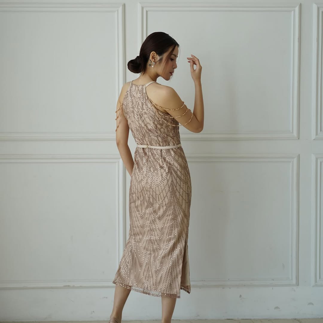 & Free ShippingThe Allure • Nude • Size: S • Dress • Midi • 120 • Party Guest • Glam • B 82-84 / W 72-74 / H 91 • Original Price: Rp1,250,000 • Deposit Rp250,000