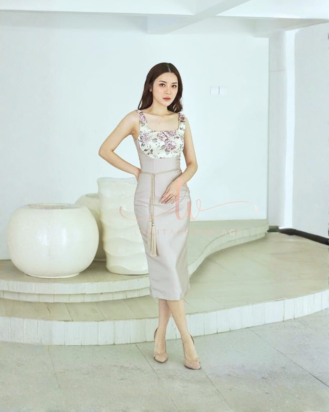 & Free ShippingLolita Luvintage • Nude • Size: S • Dress • Midi • Fr shoulder: 112 Armhole: 46 • Party Guest • Floral • B 82-84 / W 66-68 / H 84-86 • Original Price: Rp1,575,000 • Deposit Rp250,000