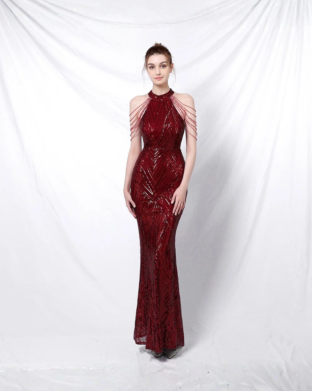 & Free ShippingSequin • Red • Size: S-L • Dress • Maxi • 150 • Hijab Friendly, Party Guest • Glam • B 80-96 / W 64-80 / H 84-100 • Original Price: Rp2,350,000 • Deposit Rp300,000