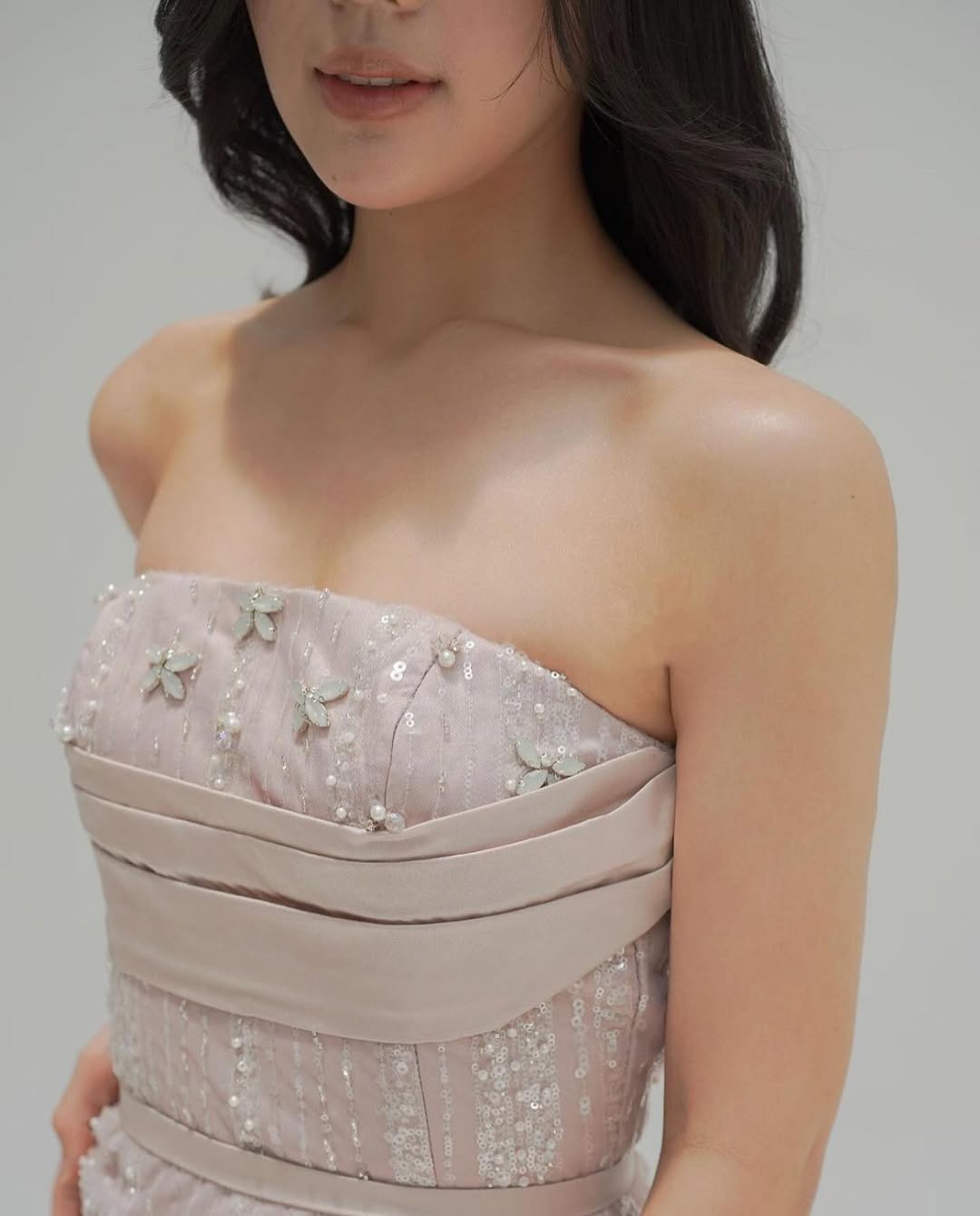 & Free ShippingLedusha • Nude • Size: M • Dress • Long Dress • 130 • Party Guest • Glam • B 84-86 / W 72 / H 94-95 • Original Price: Rp2,690,000 • Deposit Rp300,000