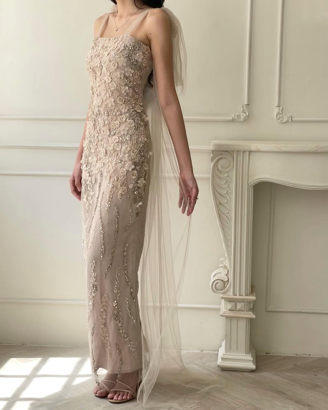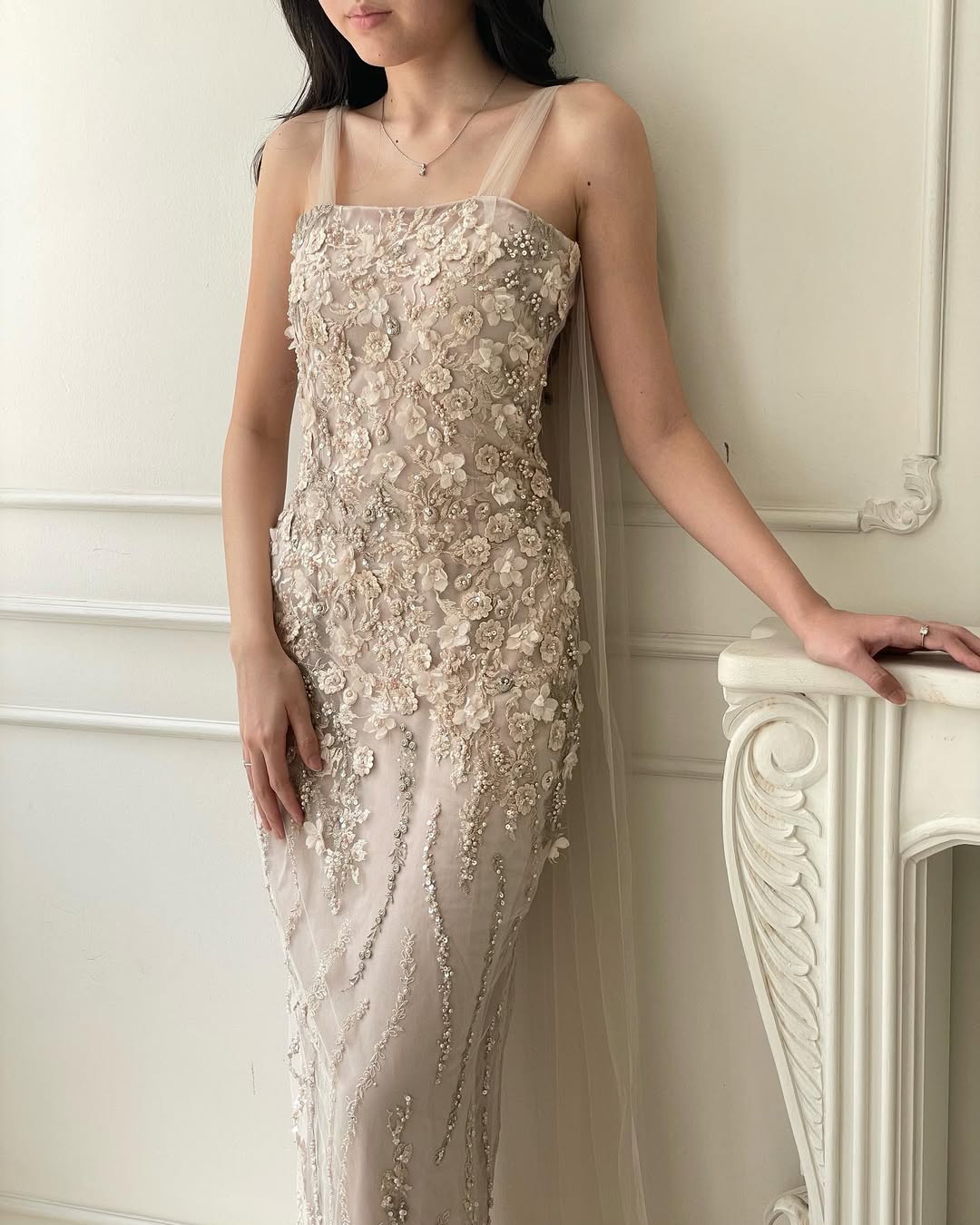 & Free ShippingTouch Up • Nude • Size: S-M • Dress • Long Dress • Fr bust: 127 • Party Guest • Floral • B 82-88 / W 70-76 / H 88-94 • Original Price: Rp2,400,000 • Deposit Rp300,000