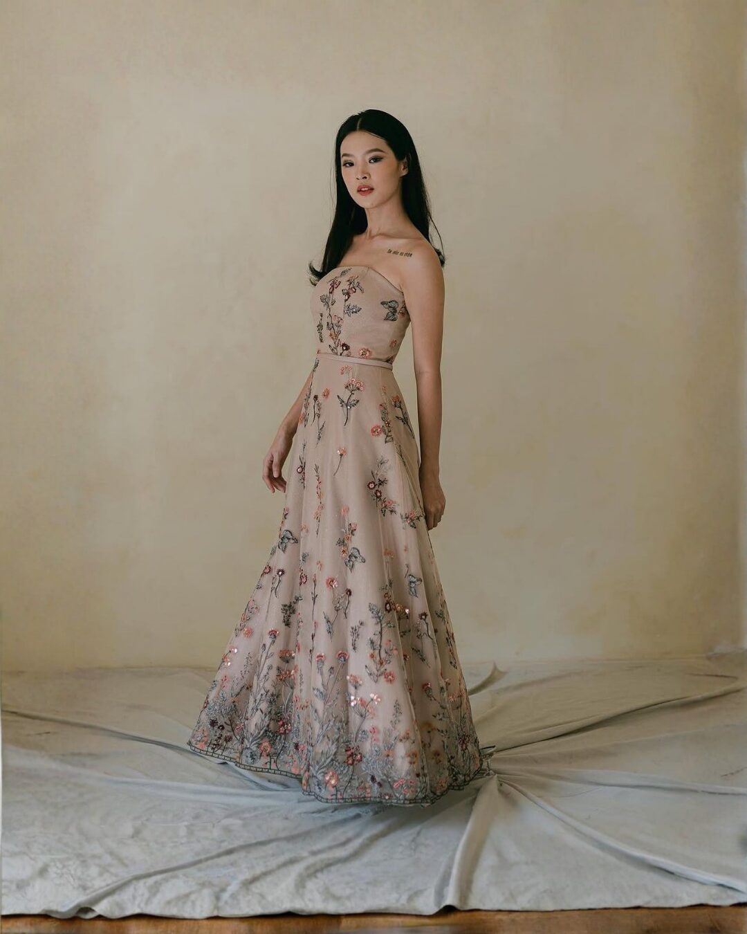 Sognare • Nude • Size: M • Dress • Long Dress • 125 • Party Guest • Floral • B 85-86 / W 73-74 • Original Price: Rp2,999,000 • Deposit Rp300,000