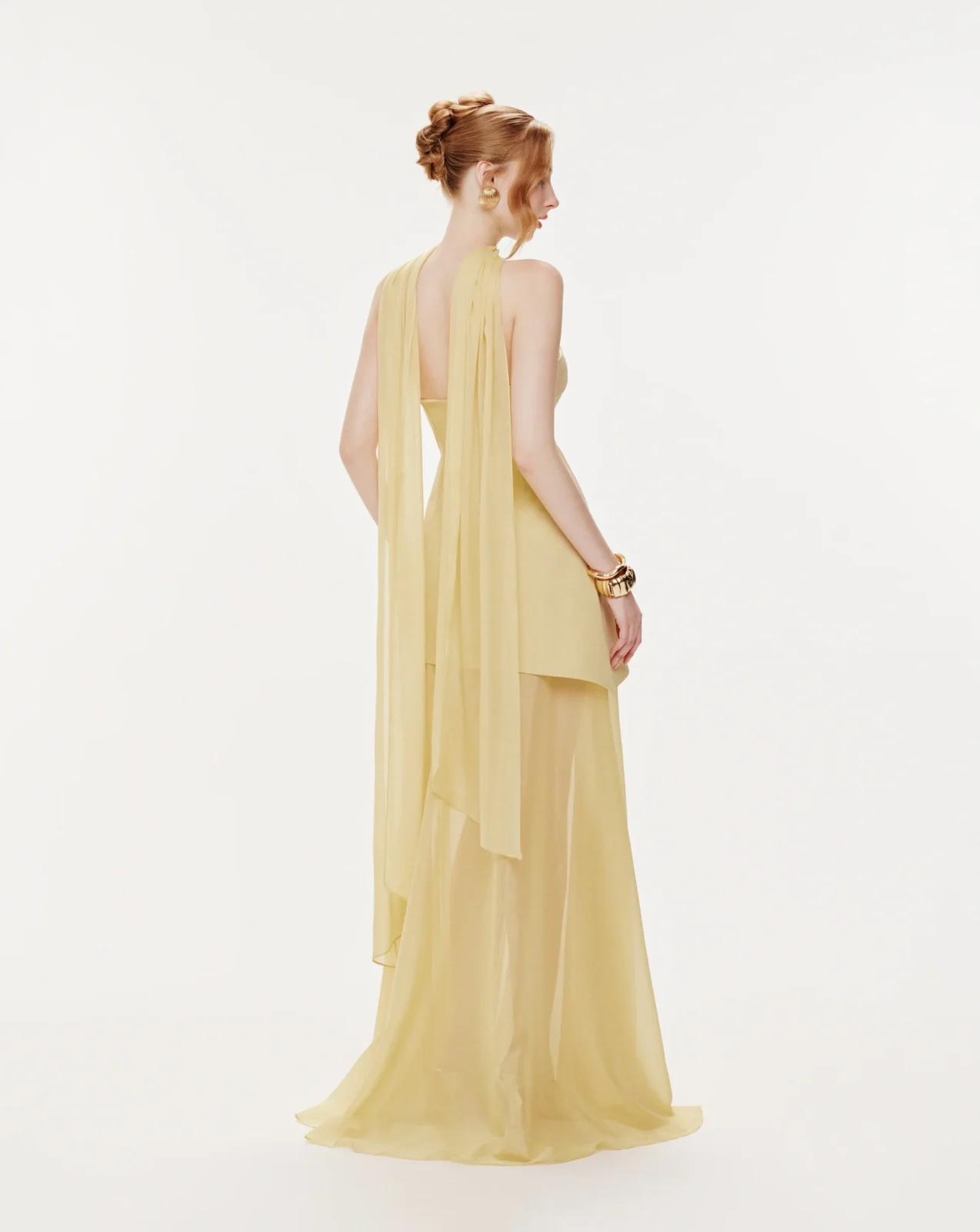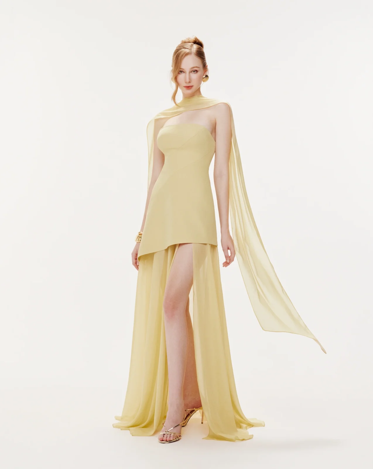& Free ShippingVietnam Mollynista • Yellow • Size: S • Dress • Maxi • 125 70 • Party Guest • Minimalist • B 82-84 / W 68-70 • Original Price: Rp1,500,000 • Deposit Rp250,000