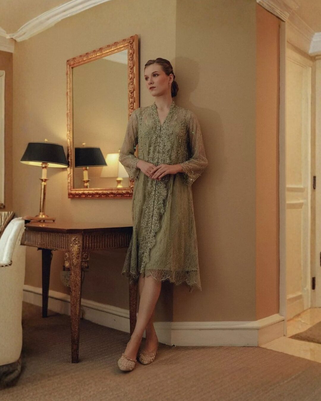 Patva • Green • Size: All Size • Dress • Midi • Inner:105 Outer 110 • Hijab Friendly, Party Guest • Minimalist • B 95 / W 110 • Original Price: Rp1,350,000 • Deposit Rp250,000