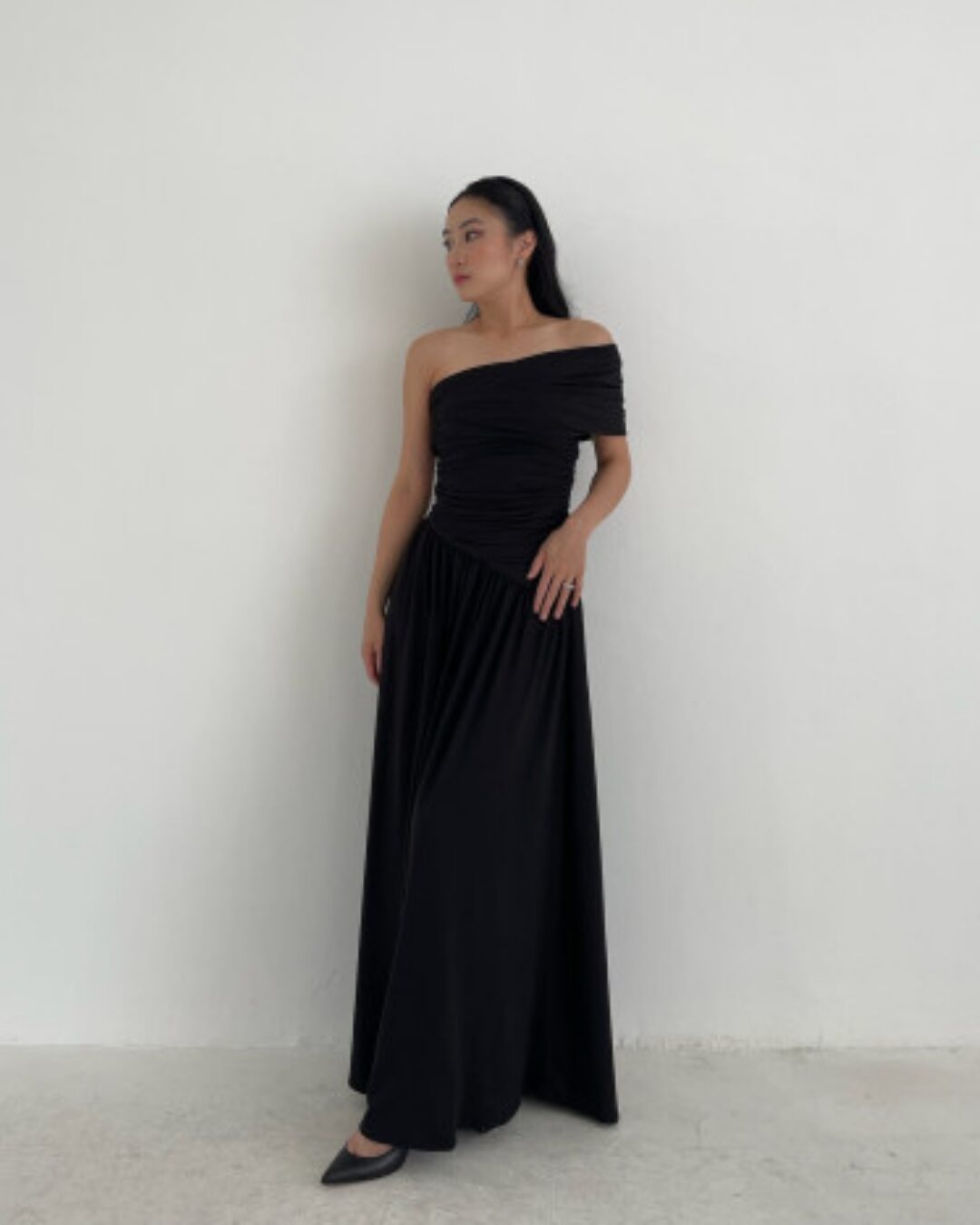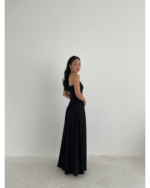 & Free ShippingGemme • Black • Size: XS-S • Dress • Long Dress • 127 • Party Guest • Minimalist • B 78-82 / W 60-70 • Original Price: Rp790,000 • Deposit Rp150,000