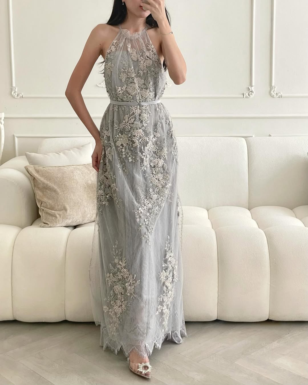 & Free ShippingTouch Up • Gray • Size: M • Dress • Maxi • Inner: 120 Dress: 140 • Maternity, Party Guest • Floral • B 88-92 • Original Price: Rp2,400,000 • Deposit Rp300,000