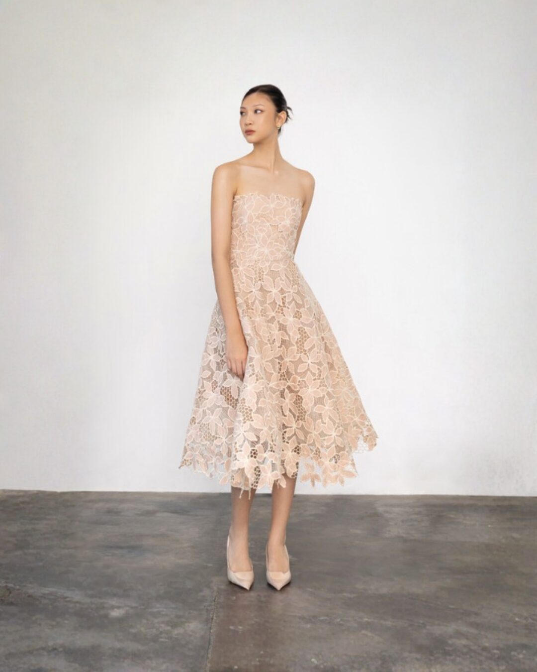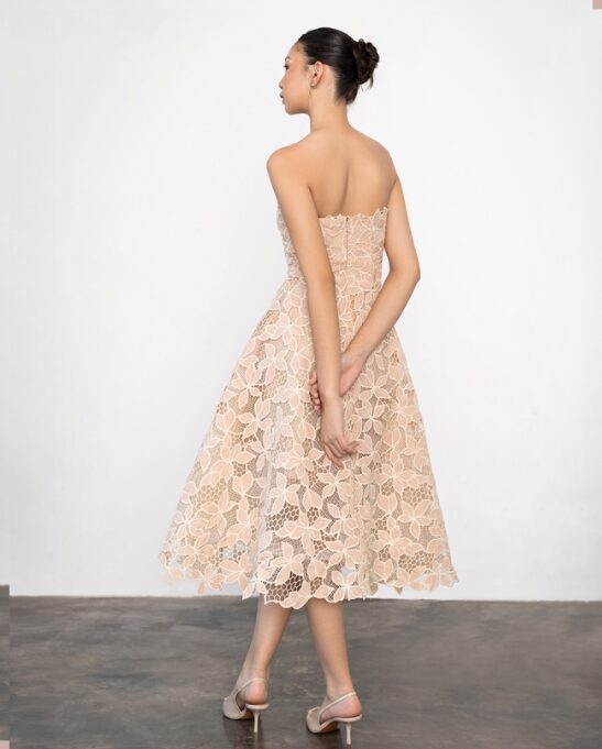 & Free ShippingFlomors • Nude • Size: S • Dress • Midi • 107 • Party Guest • Floral • B 82-84 / W 68-70 • Original Price: Rp2,499,000 • Deposit Rp300,000