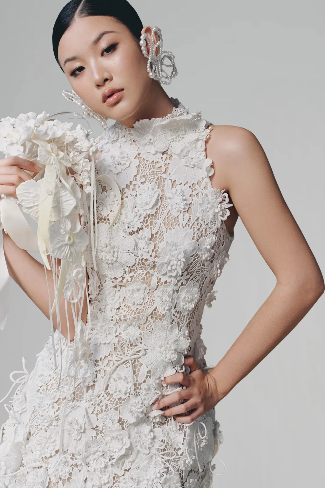 & Free ShippingVietnam Dress • White • Size: M • Dress • Mini • Fr neck: 78 • Party Guest • Floral • B 84-88 / W 70-76 • Original Price: Rp2,950,000 • Deposit Rp300,000