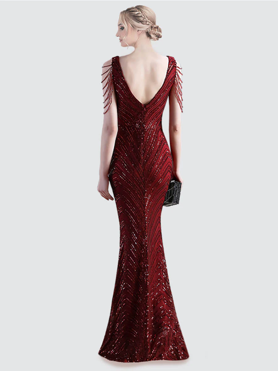 Sequin • Red • Size: S-L • Dress • Maxi • 160 • Hijab Friendly, Party Guest • Glam • B 80-96 / W 64-80 / H 84-100 • Original Price: Rp2,350,000 • Deposit Rp300,000