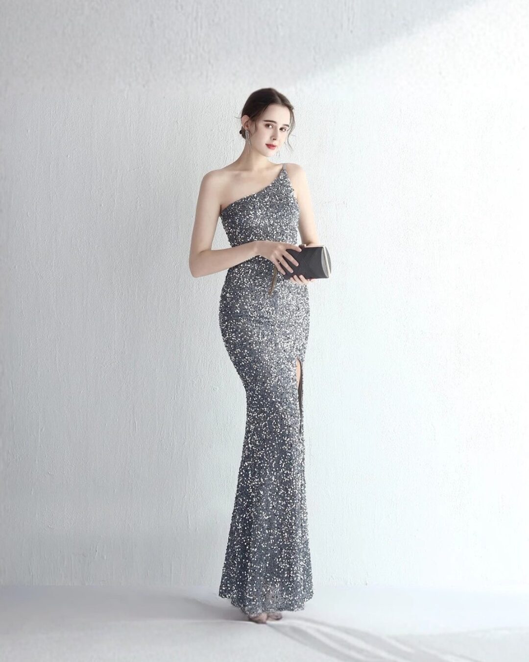 & Free ShippingSequin • Gray • Size: All Size • Dress • Long Dress • 155 • Party Guest • Glam • B 80-96 / W 64-80 / H 84-110 • Original Price: Rp2,350,000 • Deposit Rp300,000