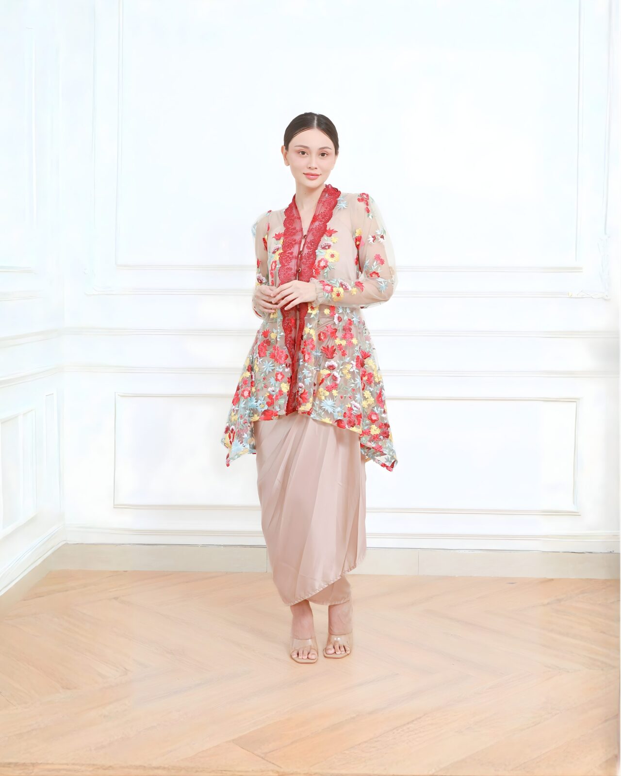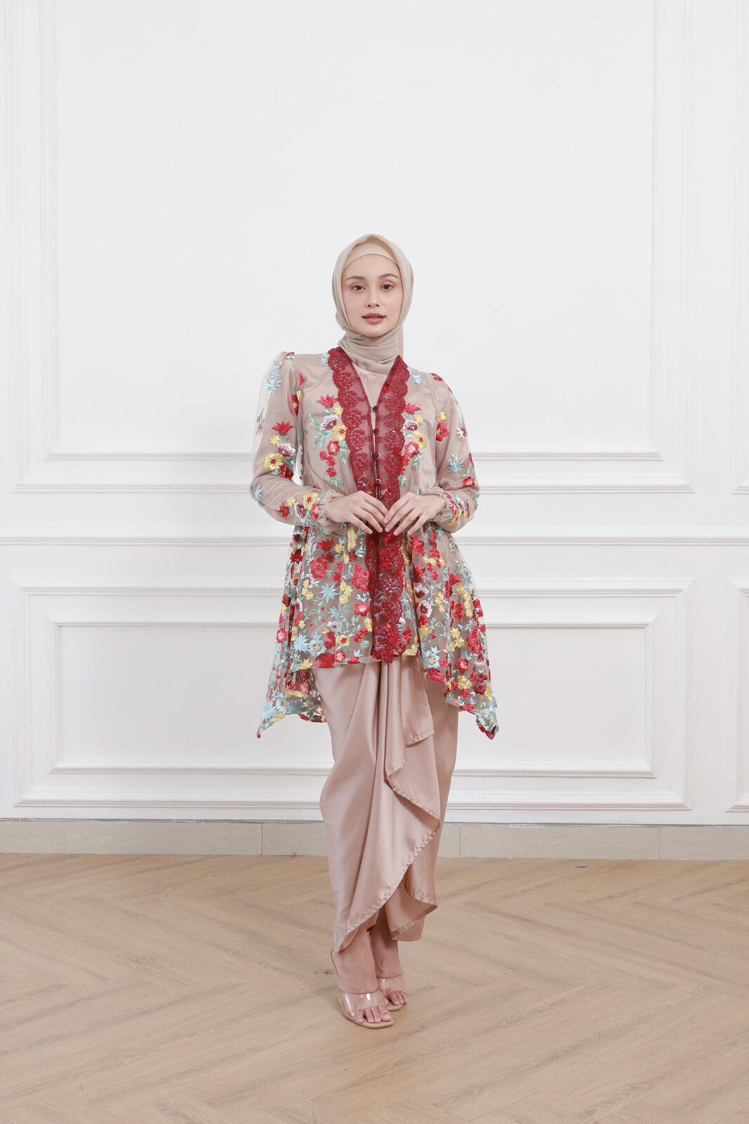 & Free ShippingJaleela • Nude • Size: All Size • Sets (Top & Bottom) • Long Dress • Top: 85 Arm: 60 Skirt (PxL): 102×128 • Kebaya Friendly, Hijab Friendly • Floral • B 97 / W 44 • Original Price: Rp1,599,000 • Deposit Rp250,000