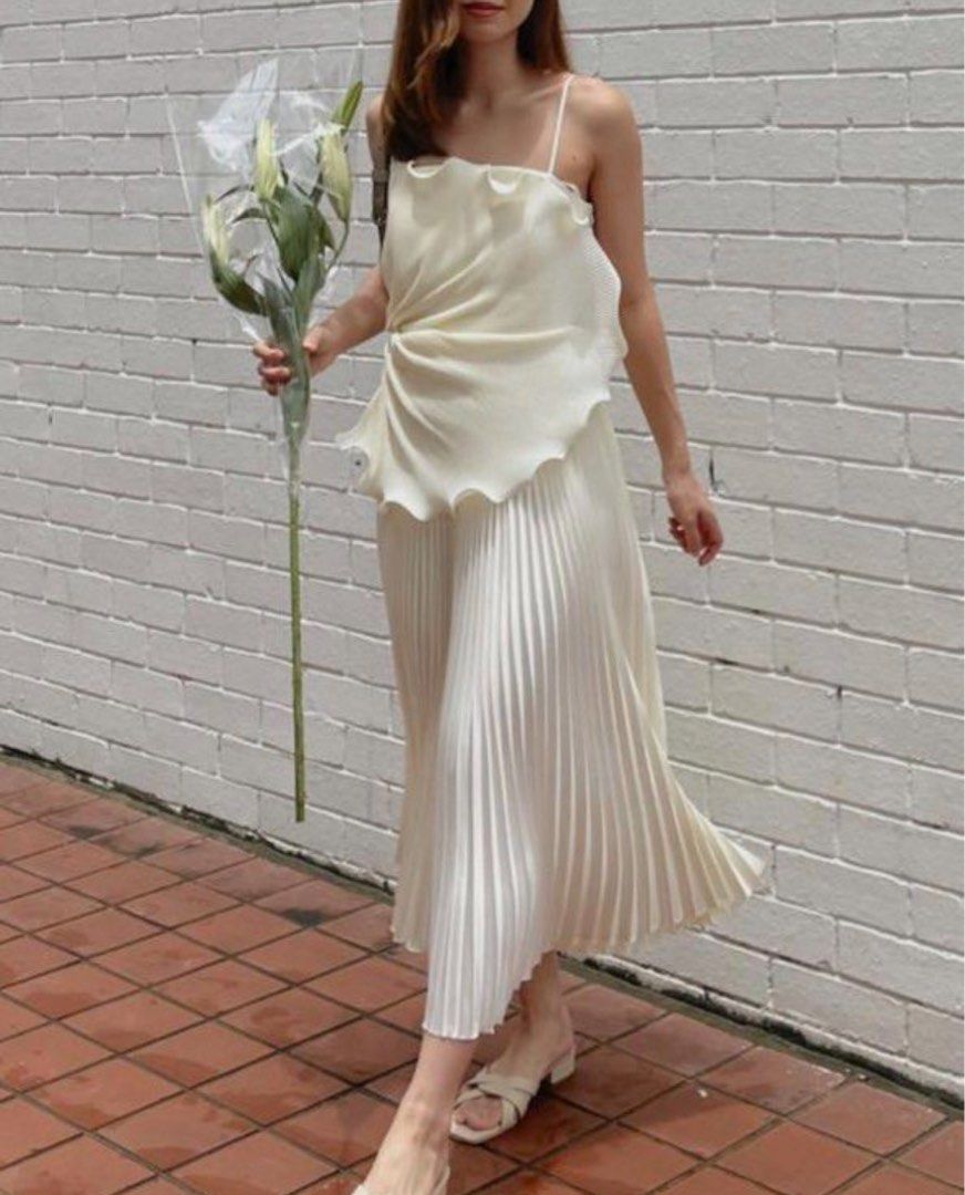 & Free ShippingClaude Official • White • Size: L • Dress • Long Dress • 104 Strap: 40 • Party Guest • Minimalist • B 88-90 / W 74-86 • Original Price: Rp650,000 • Deposit Rp150,000