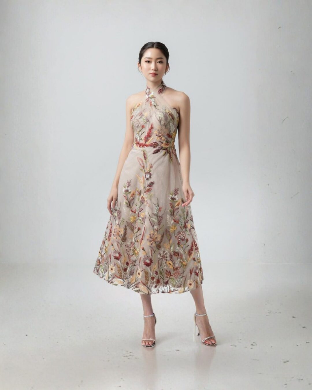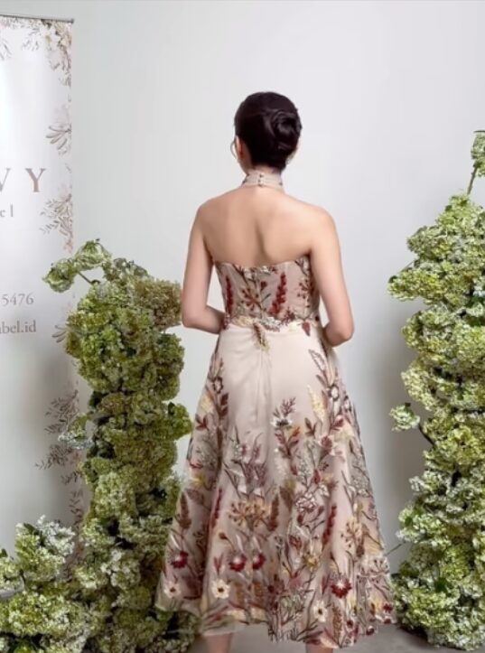 Savvy The Label • Nude • Size: S • Dress • Long Dress • Fr bust: 105 Fr waist: 80 • Party Guest • Floral • B 78-82 / W 66-70 • Original Price: Rp3,580,000 • Deposit Rp300,000