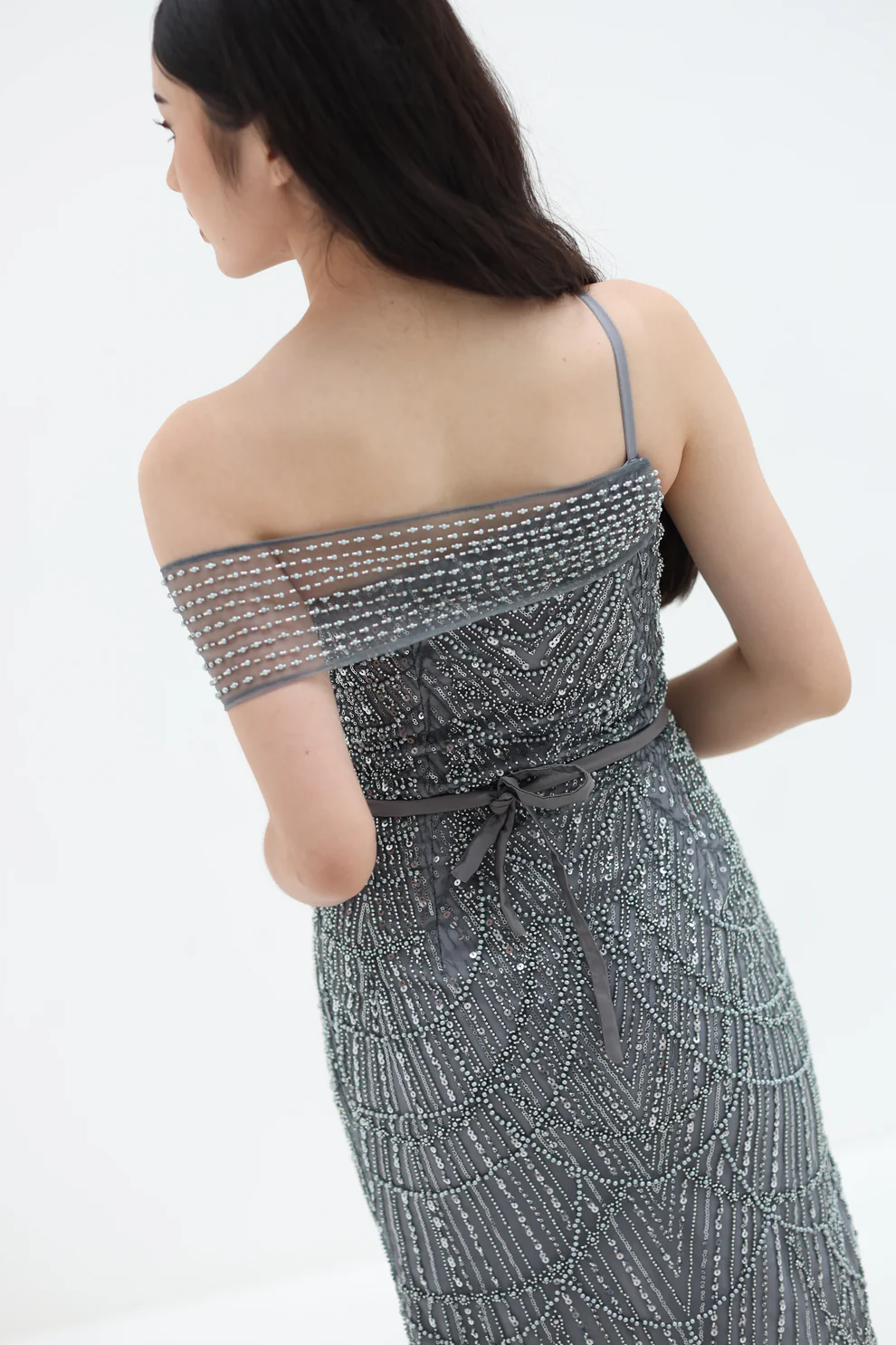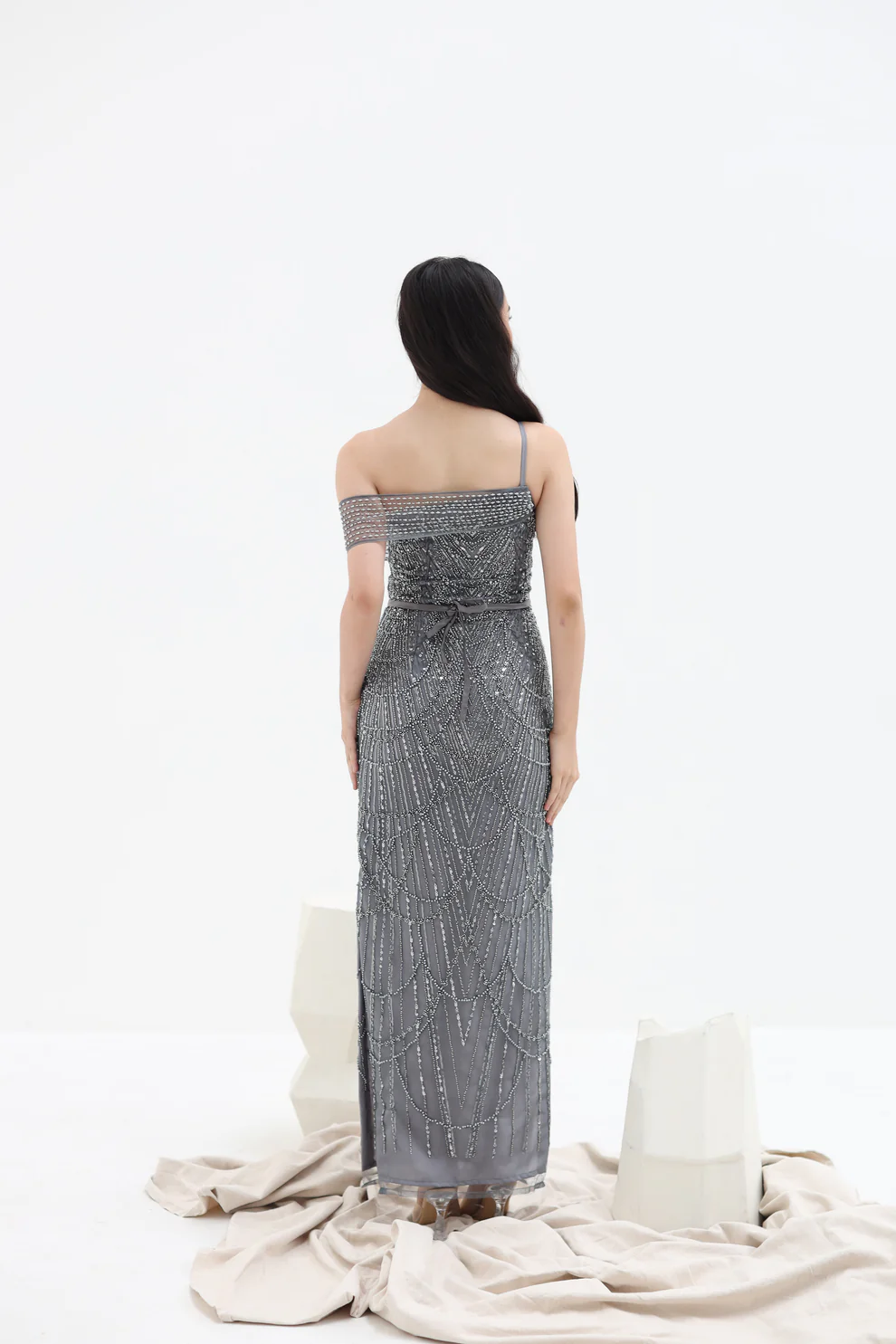 & Free ShippingLa Fleur • Gray • Size: S • Dress • Maxi • 125 • Party Guest • Glam • B 81-85 / W 66-70 / H 88-92 • Original Price: Rp2,450,000 • Deposit Rp300,000