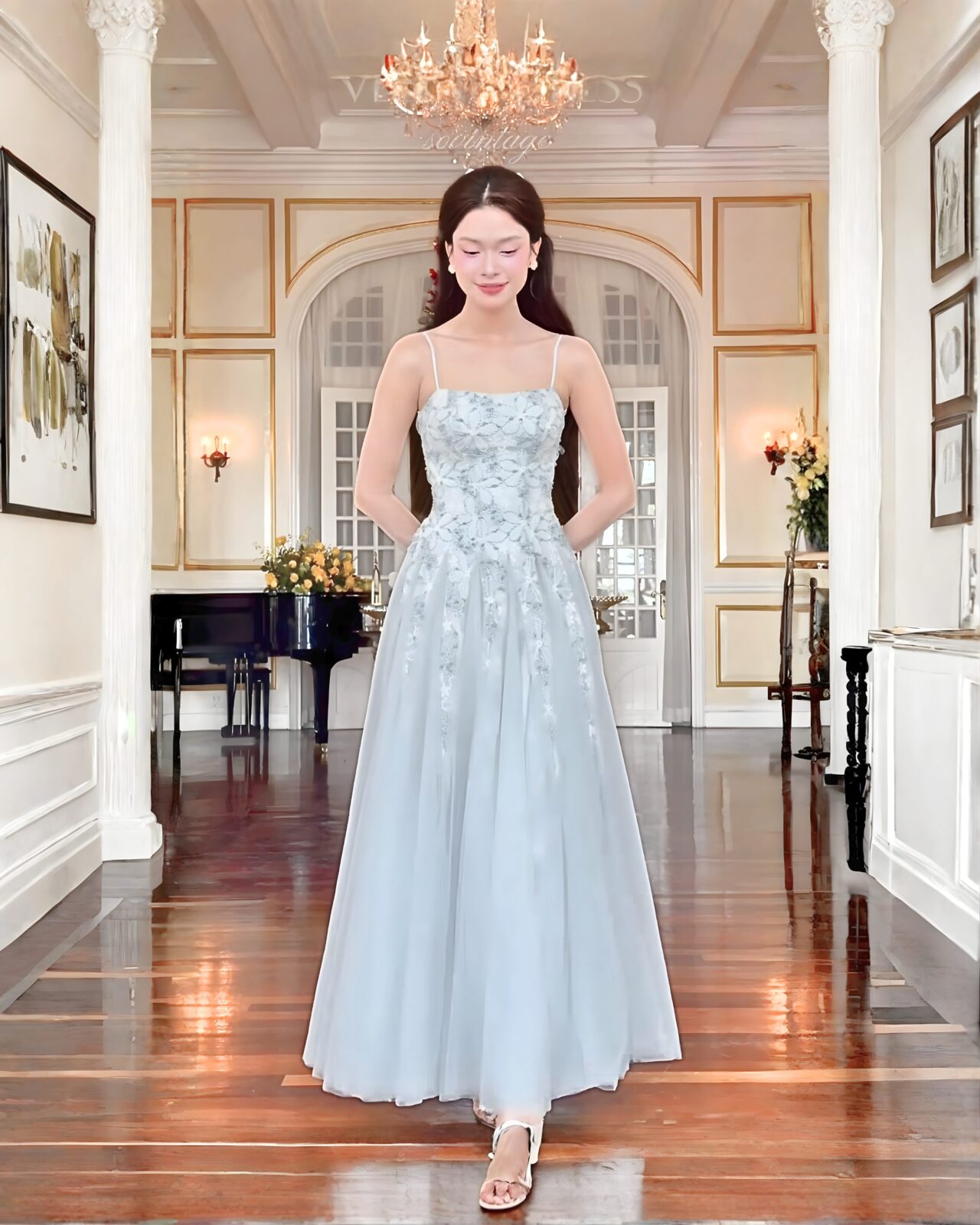 & Free ShippingVietnam Dress • Gray • Size: S-M • Dress • Long Dress • 125 • Party Guest • Floral • B 82-86 / W 72-74 • Original Price: Rp1,850,000 • Deposit Rp250,000