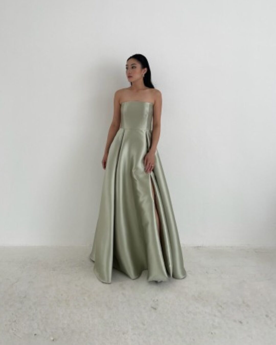 & Free ShippingGemme • Green • Size: M • Dress • Long Dress • Fr bust: 124 Fr waist:104 • Party Guest • Minimalist • B 88-92 / W 73-75 • Original Price: Rp1,225,000 • Deposit Rp250,000