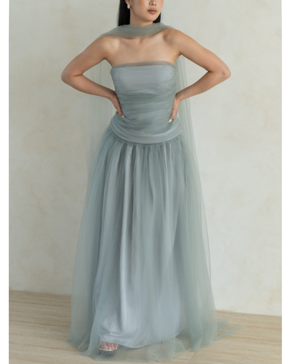 & Free ShippingGemme • Blue • Size: S • Dress • Long Dress • 140 • Party Guest • Minimalist • B 80-84 / W 68-72 • Original Price: Rp1,750,000 • Deposit Rp250,000
